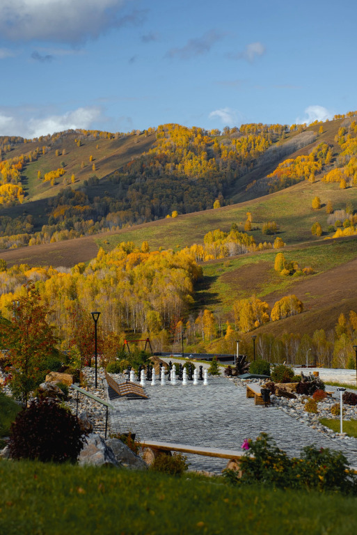 Отель «Алтай Пэлас» находится в Урочище Каим, в долине Горного Алтая за горой Каим.