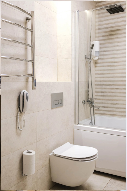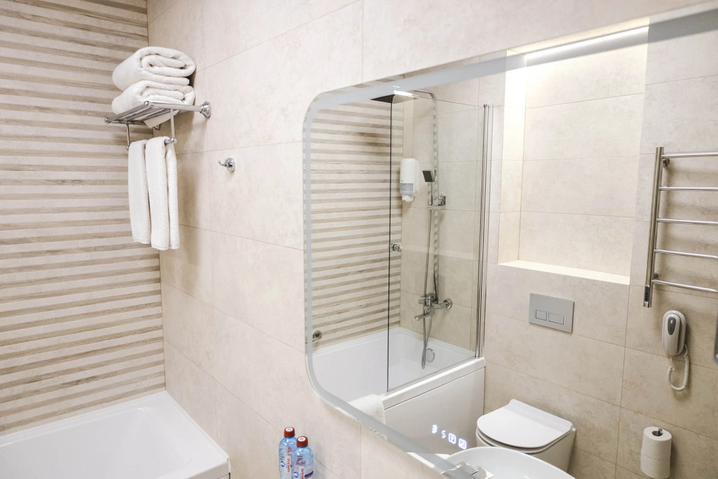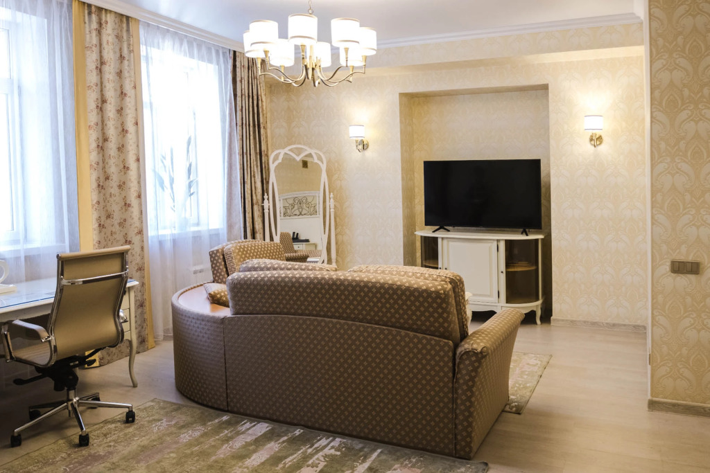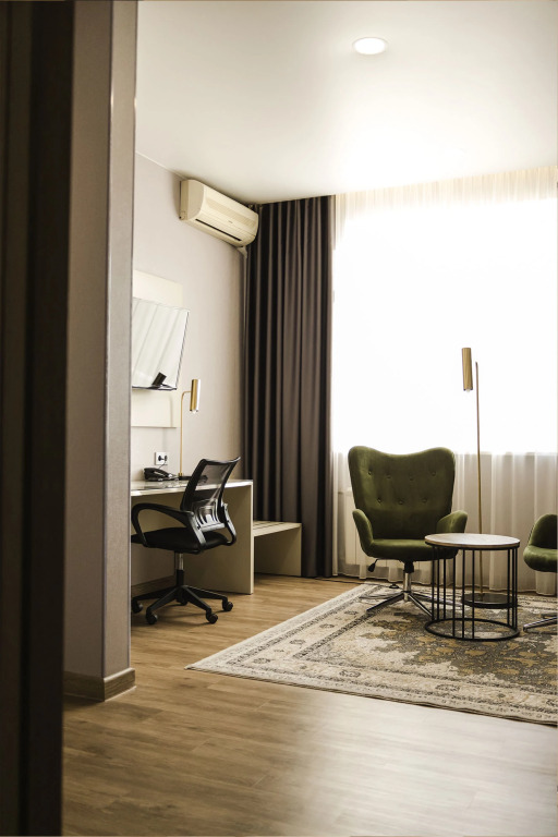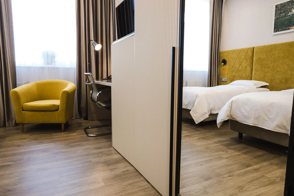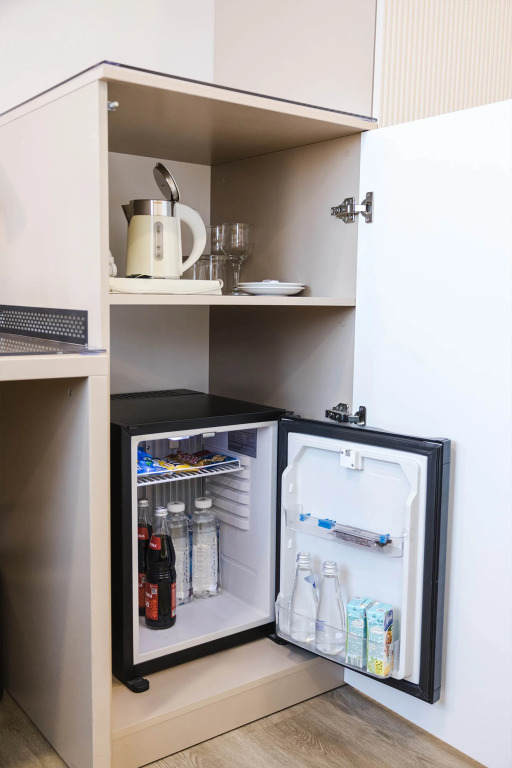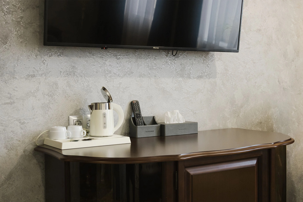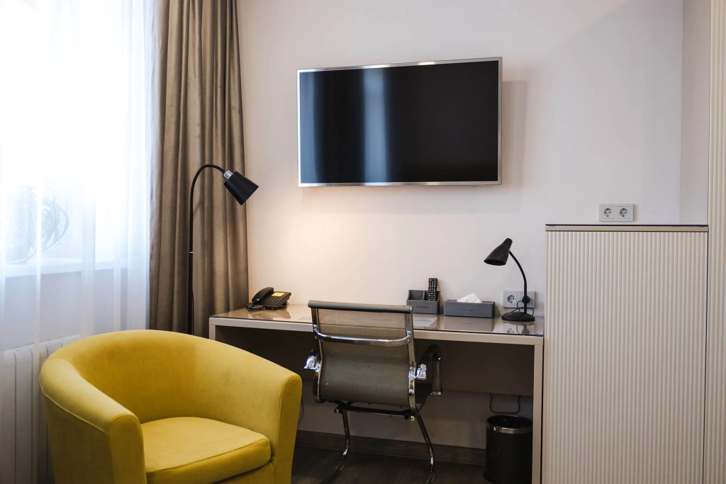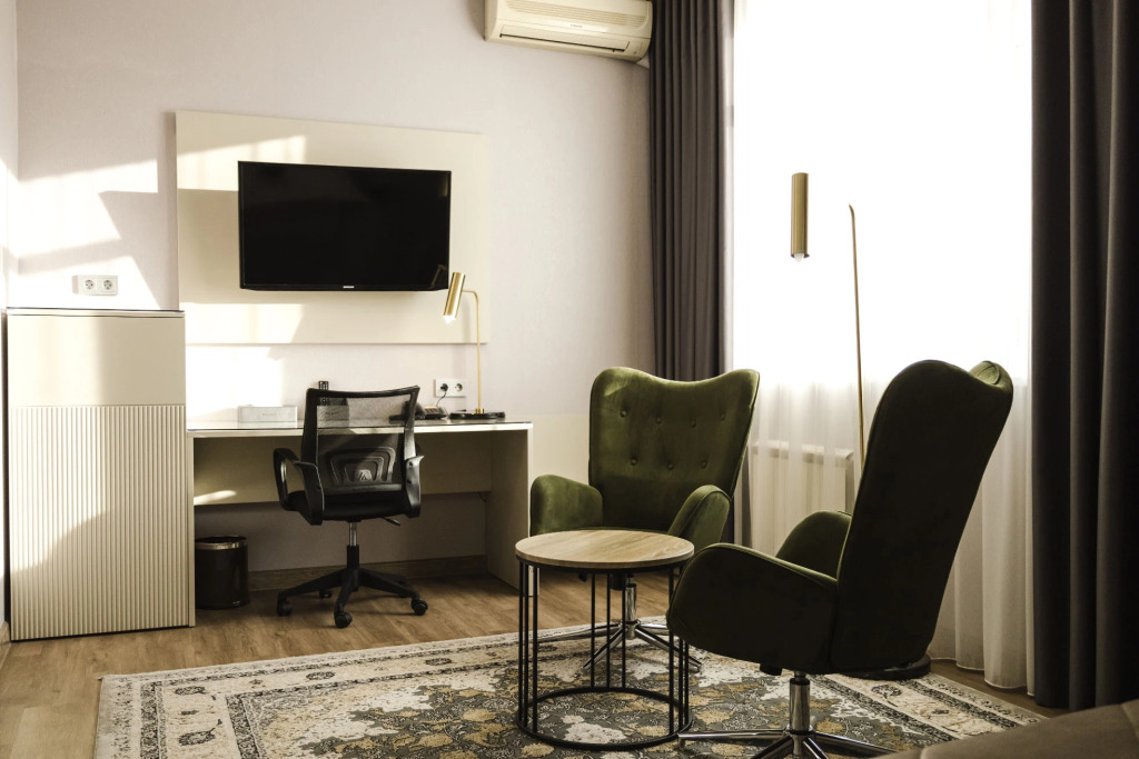 В номерах предоставляется: кондиционер, шкаф, стол, холодильник, телевизор, телефон, чайник, кухонная посуда, утюг, гладильная доска, собственная ванная комната. Оснащение зависит от выбранной категории проживания.