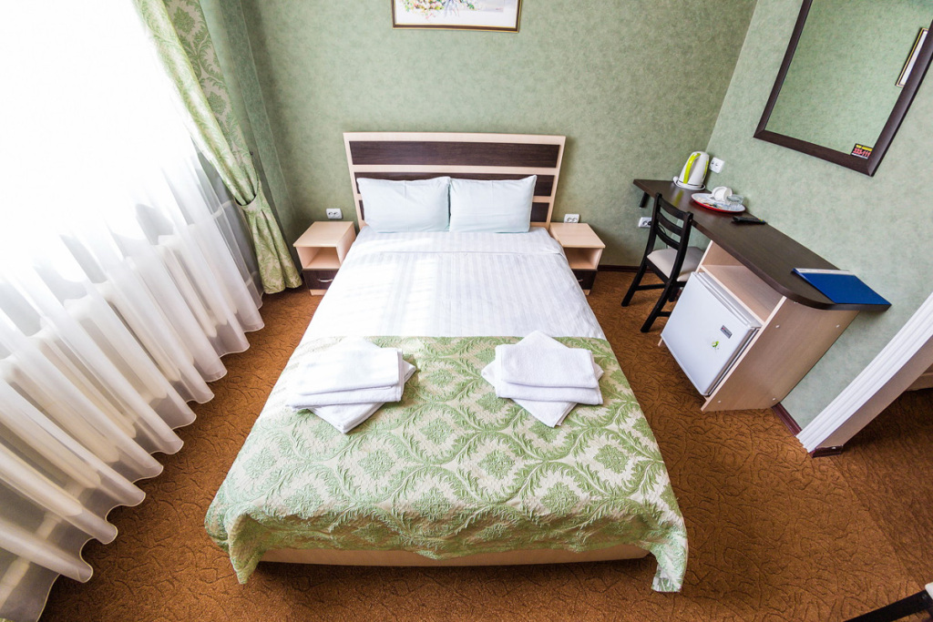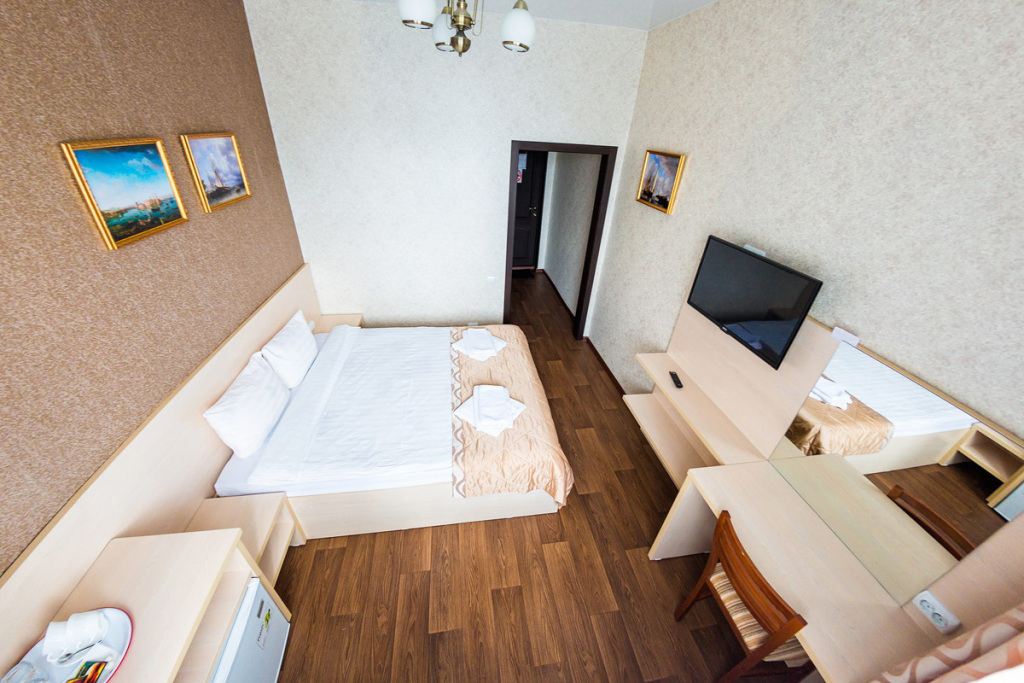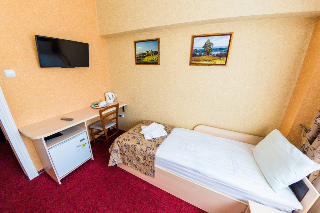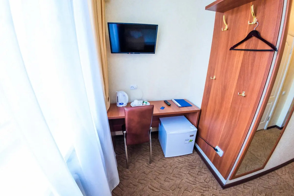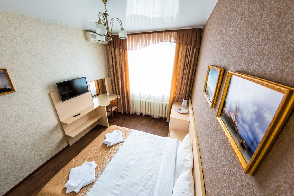 В номере вас будут ждать телевизор и халат. Оснащение зависит от выбранной категории номера.
