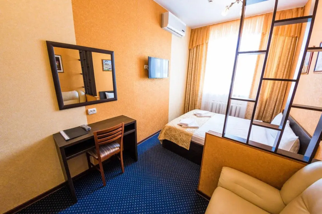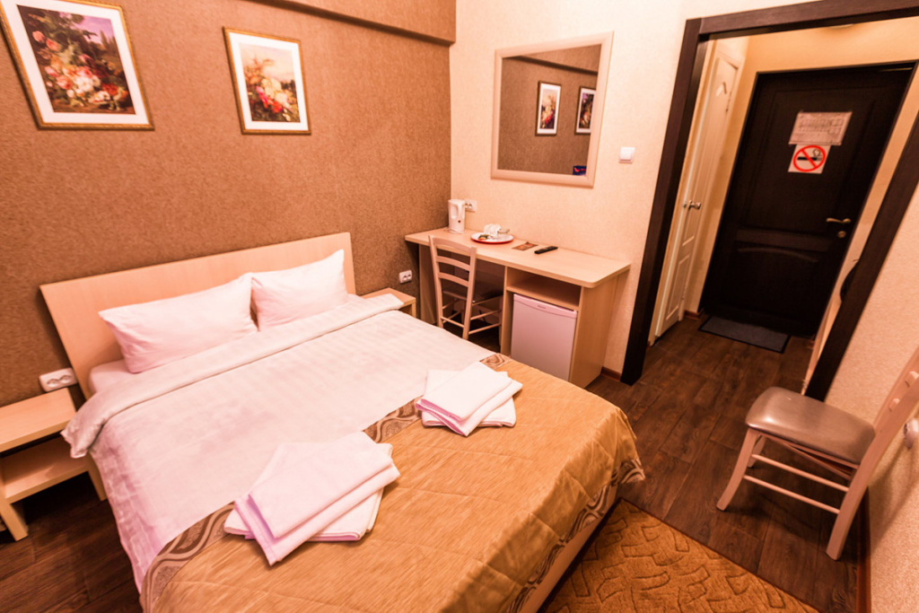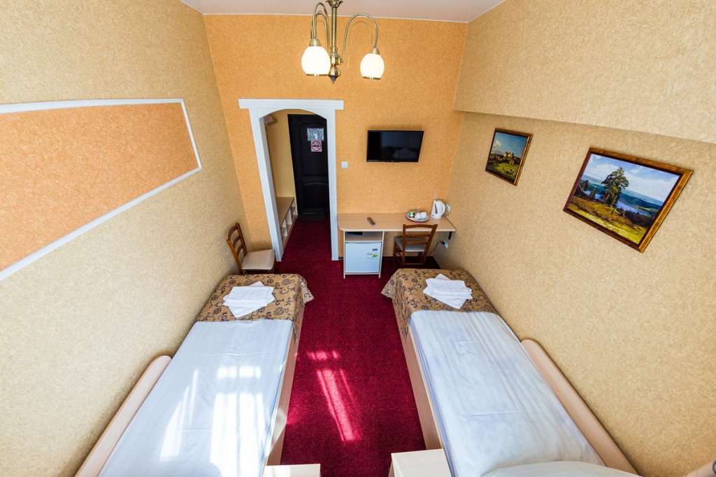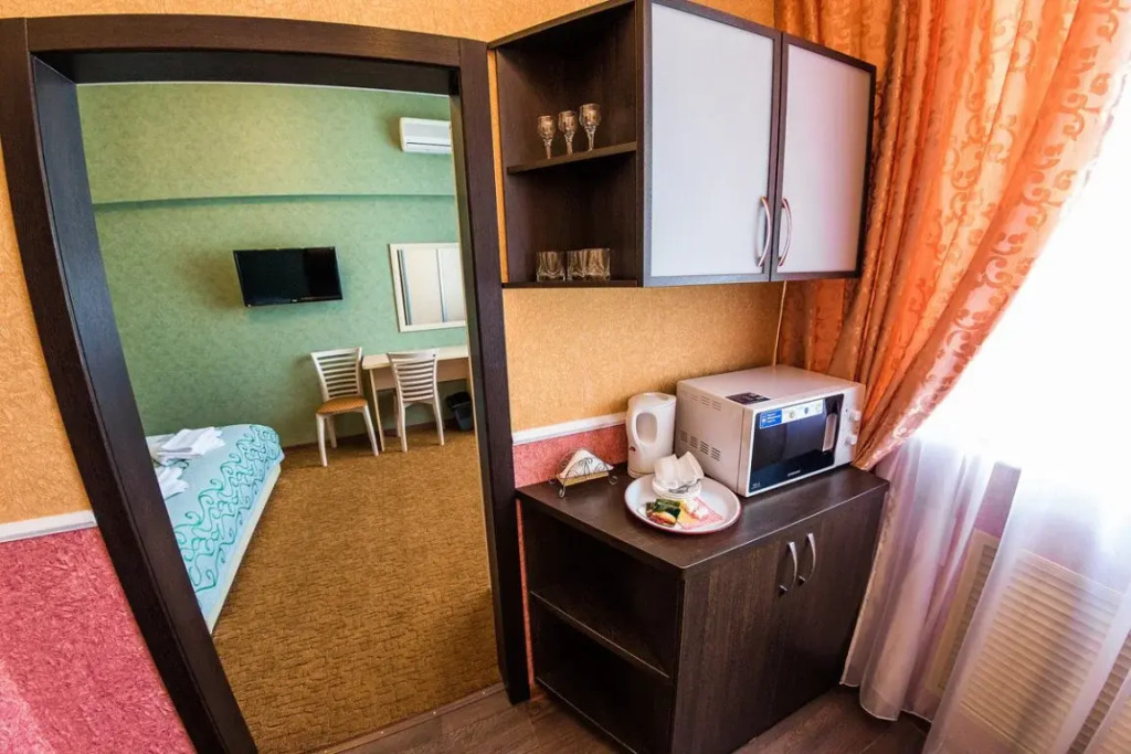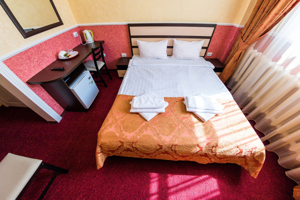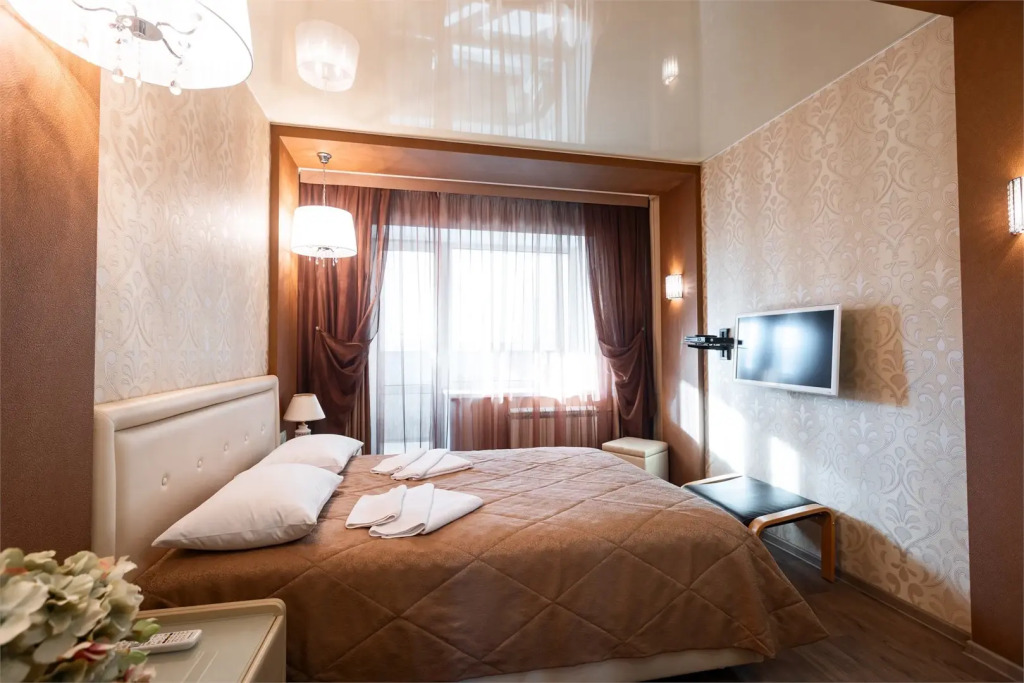 В номере вас будут ждать телевизор и халат. Оснащение зависит от выбранной категории номера.
