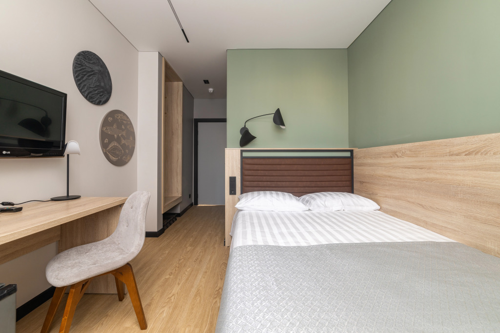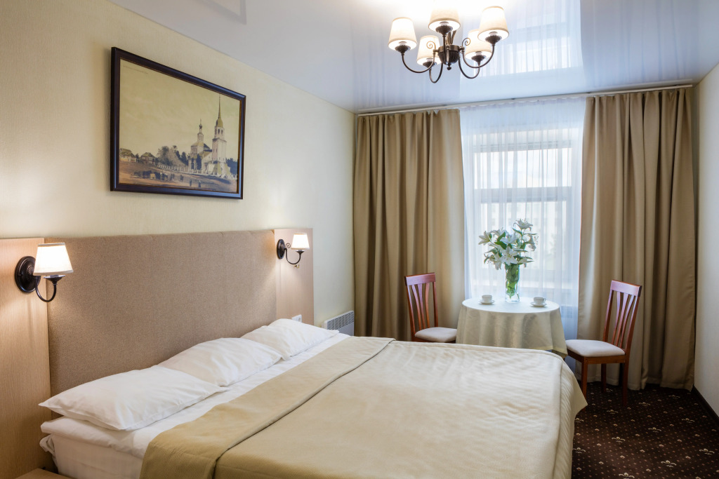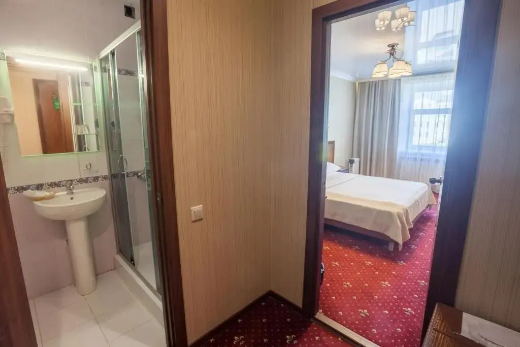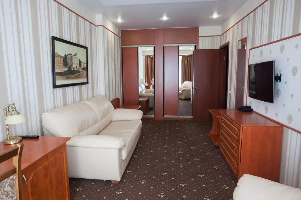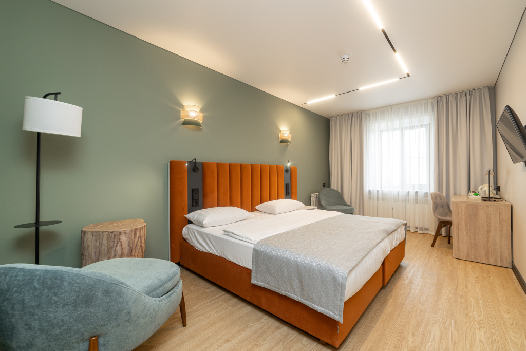 Номер уютно обставлен и оснащён необходимым, чтобы отдохнуть после долгого и насыщенного дня. Имеются телевизор и халат. Перечисленные услуги есть не во всех номерах.