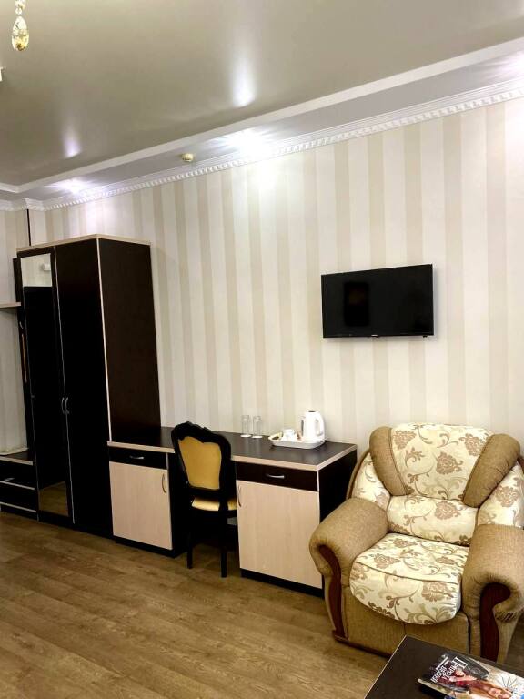 Чтобы вы могли отдохнуть после долгого дня, в номере есть телевизор, мини-бар и халат. Оснащение зависит от выбранной категории номера.