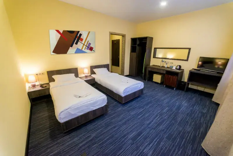 Чтобы вы могли отдохнуть после долгого дня, в номере есть душ, телевизор и тапочки. Оснащение зависит от выбранной категории номера.