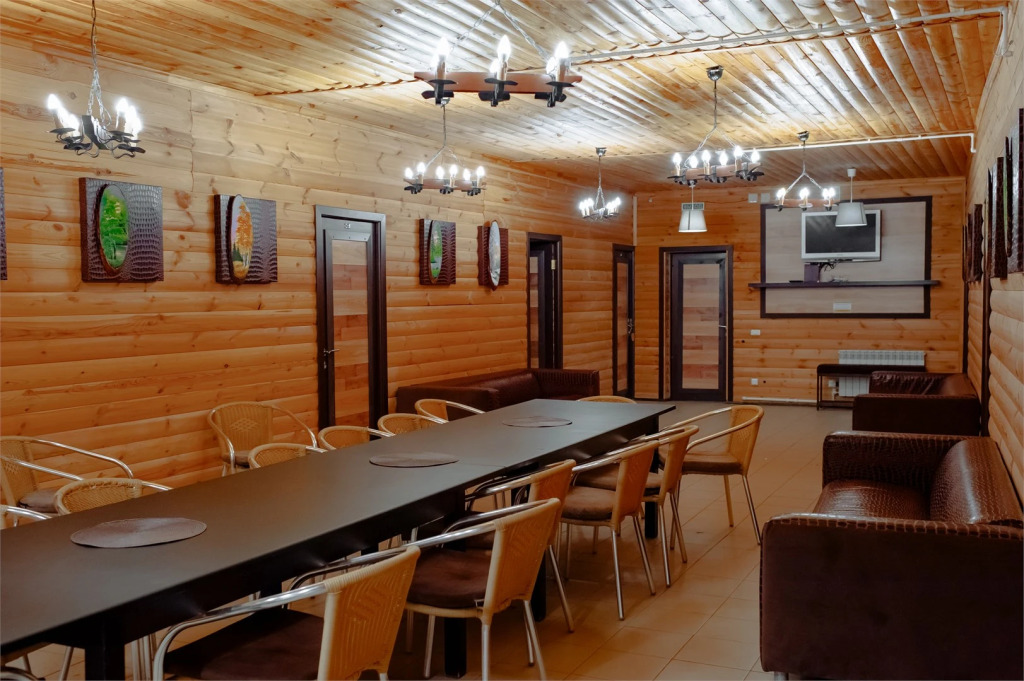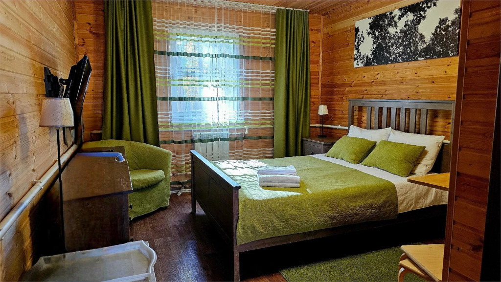 Прекрасная территория. Много площадок для детей. И еще прекрасная детская игровая комната. Очень комфортно гулять по тенечку в жару. Питание: завтраки достаточные, вкусные, разнообразные. На второй день ( в воскресенье народу было больше, и выпечка закончилась быстрее). Брали комплексный обед 350 руб на человека. Щи, куриная отбивная с картошкой,салат. Ужинали в ресторане. Обслуживание очень быстрое, 5 горячих, закуски, напитки, буквально молниеносно принесли. И все очень вкусно. Заказывали свиную рульку. Ням-ням. Номер: у нас были мини-апартаменты в 1 корпусе. Чисто, достаточно свежо, но кондиционера нет. Если долго будет жара стоять, то будет душновато. В этих апартаментах нормально поместятся 6 человек. Пляж. Лежаков достаточно, бар на пляже есть, напитки и фаст-фуд готовят там. Отдыхом остались довольны, постараемся приехать еще. Дорога , которая идет по лесу от трассы до базы.примерно 2 км очень проселочная дорога, волнообразная. Грейдер бы не помешал. Были в бане на озере. Баня сама отличная, НО вода пахнет очень сильно сероводородом. И на второй день не работала кофемашина на завтрак. Печально без кофе. В номере плохо уходила вода в душевой. И связи сотовой ( у нас МТС) нет в корпусах. Только на территории. И Wi-Fi платный. Но на ресепшене продаются симки Теле-2. Видимо, она лучше "берет"