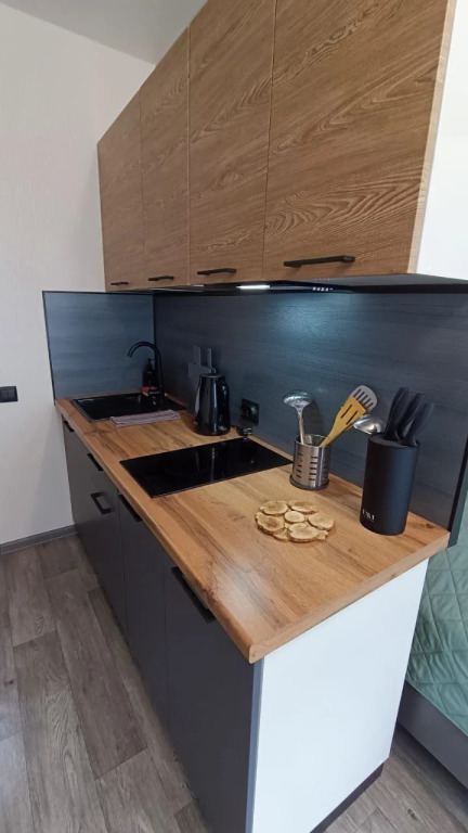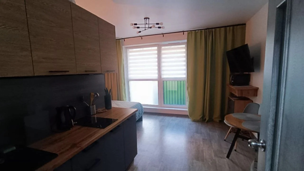 В апартаментах имеются диван, кухонный гарнитур, стол, стулья, микроволновая печь, холодильник, плита, телевизор со SmartTV, стиральная машина, гладильная доска, утюг, фен, чайник, посуда, кухонные принадлежности. Гостям предоставляются постельное бельё, полотенца и доступ к сети Wi-Fi.