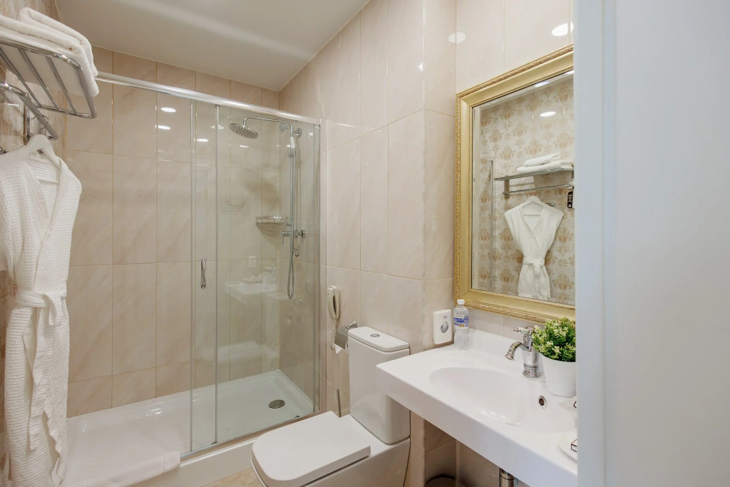 Чтобы вы могли отдохнуть после долгого дня, в номере есть будильник, душ, телевизор, мини-бар, халат и тапочки. Перечисленные услуги есть не во всех номерах.