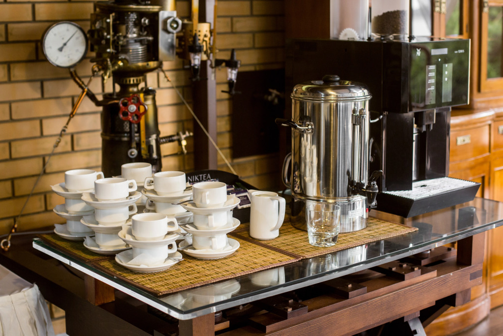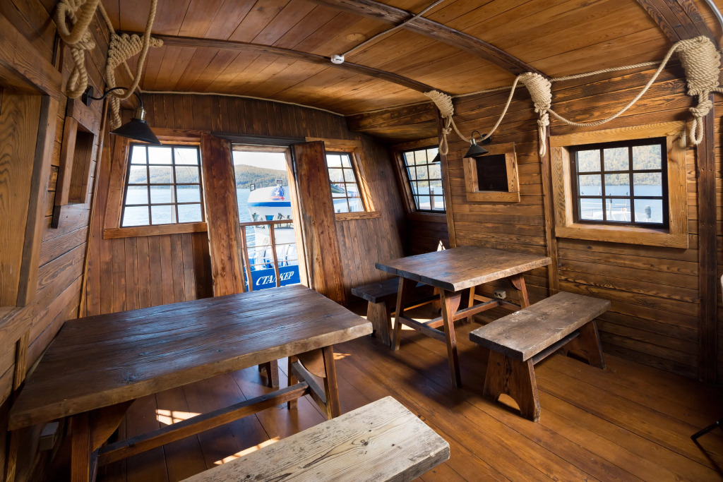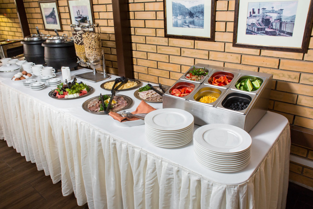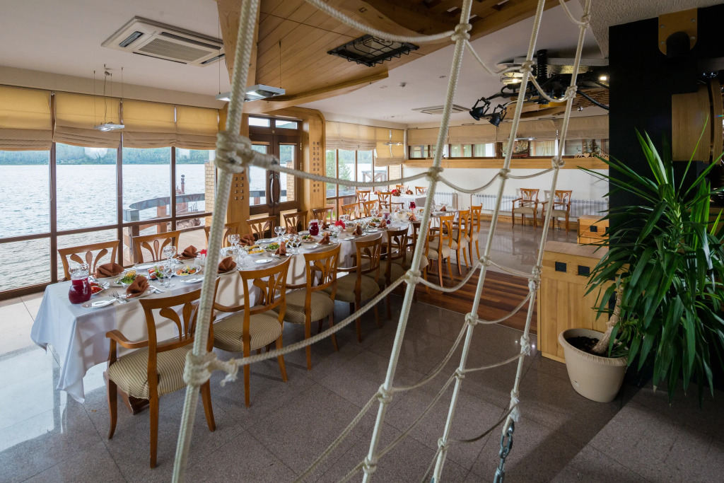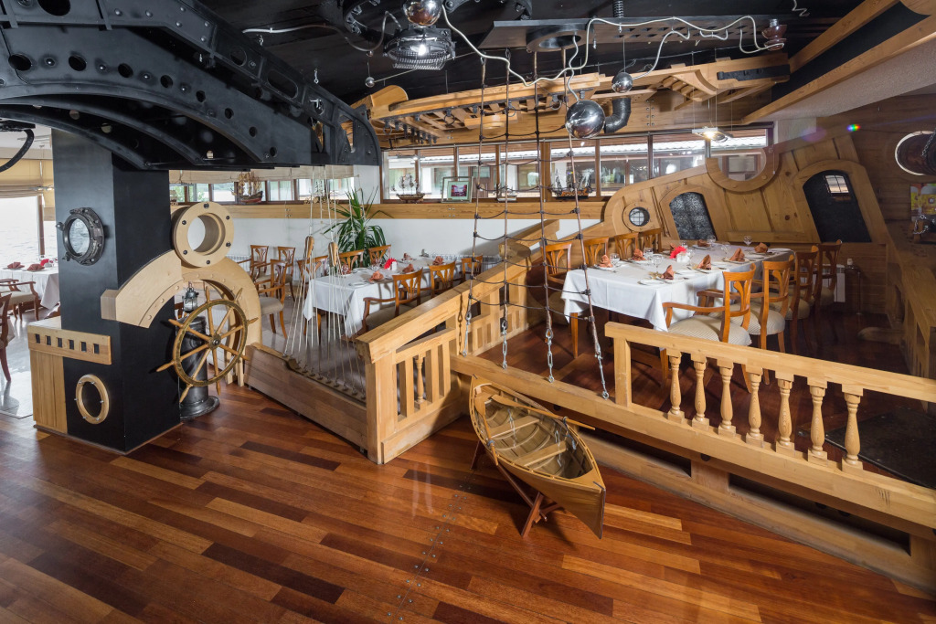 На территории гостиничного комплекса есть ресторан. Интерьер выполнен в морском стиле, рассчитан на 52 гостя и предлагает блюда традиционной русской и сибирской кухни. Завтрак можно забронировать дополнительно при заезде. Завтраки предоставляются в «формате континентальный завтрак» или «шведский стол» с 8:00 до 11:00. С мая по сентябрь завтраки сервируются в летней веранде с панорамными окнами.