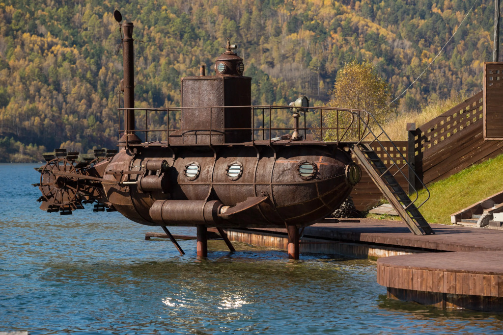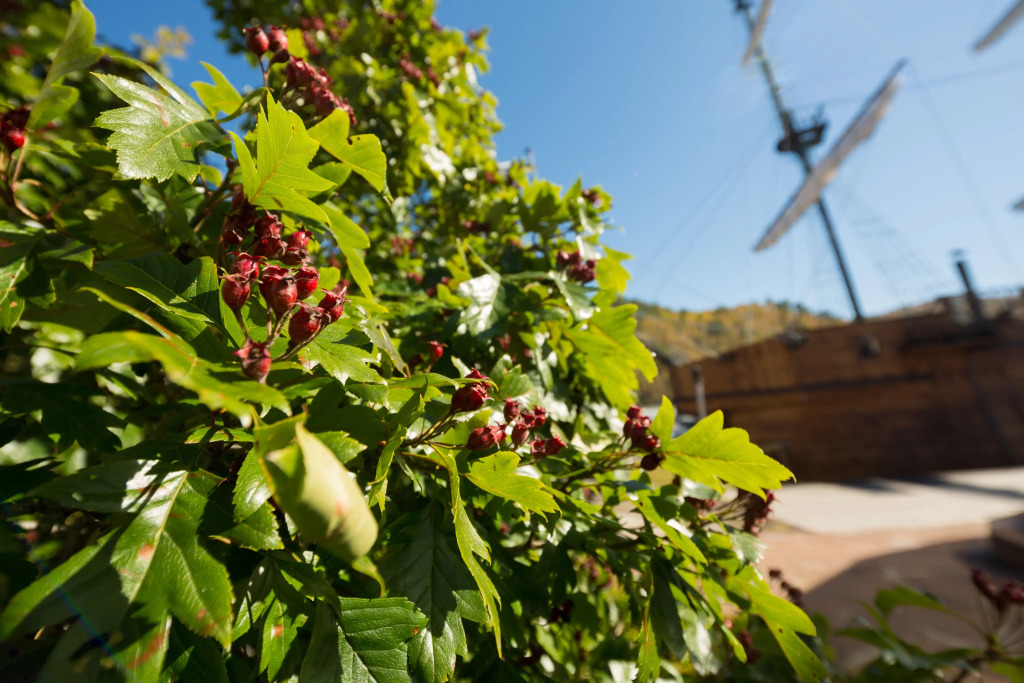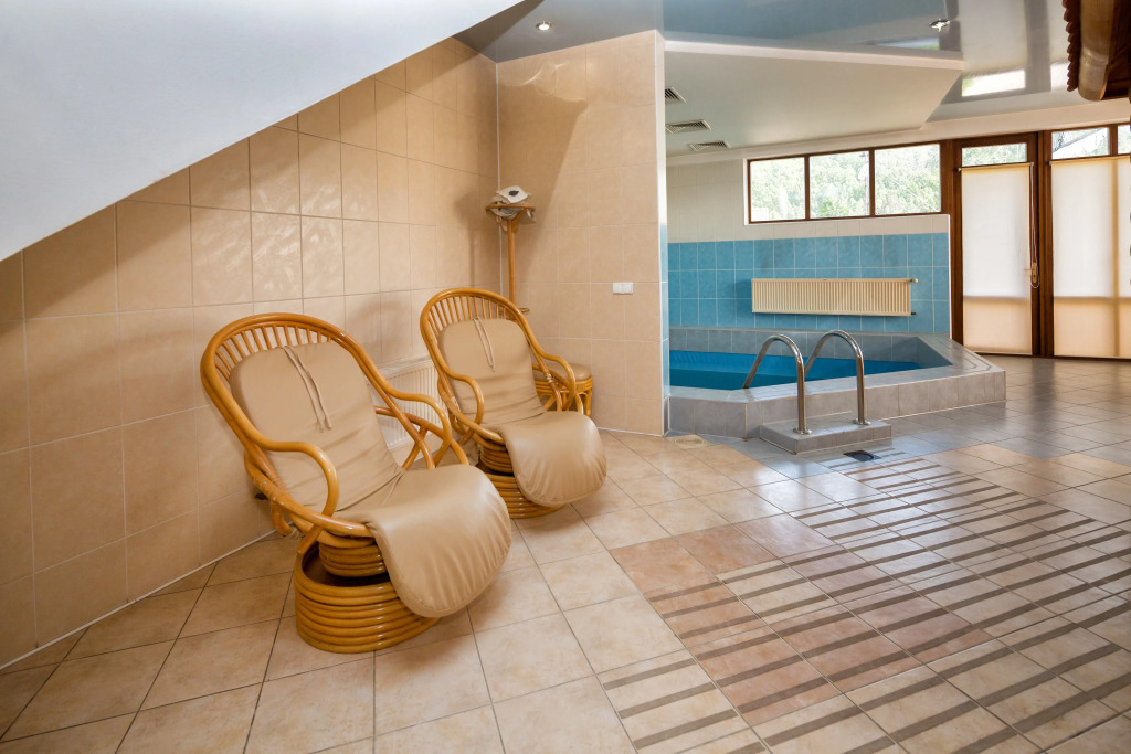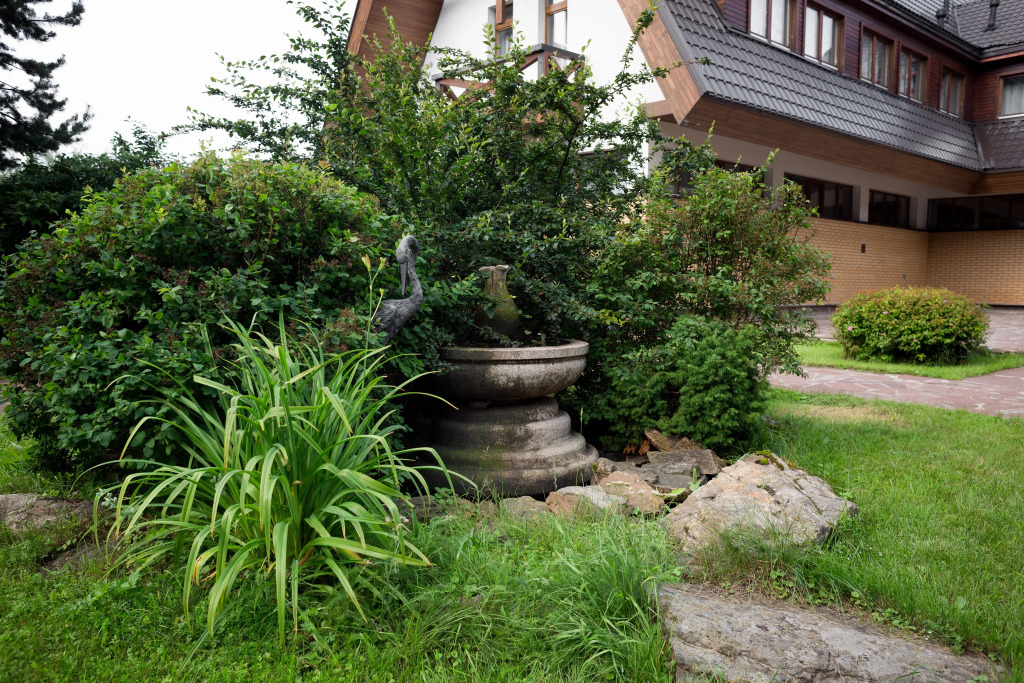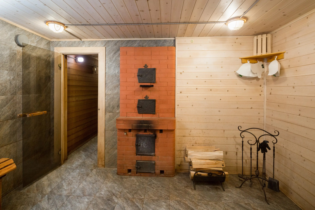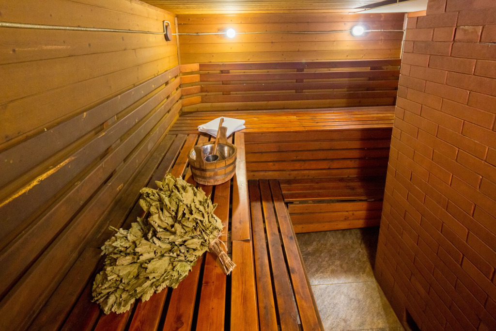 Также имеется баня, выполненная в стиле фрегата времён Петра 1. Территория отеля продолжает тему мореходства: на ней имеется деревянный фрегат, подводная лодка, корабельные пушки, маяк, якоря, рында.