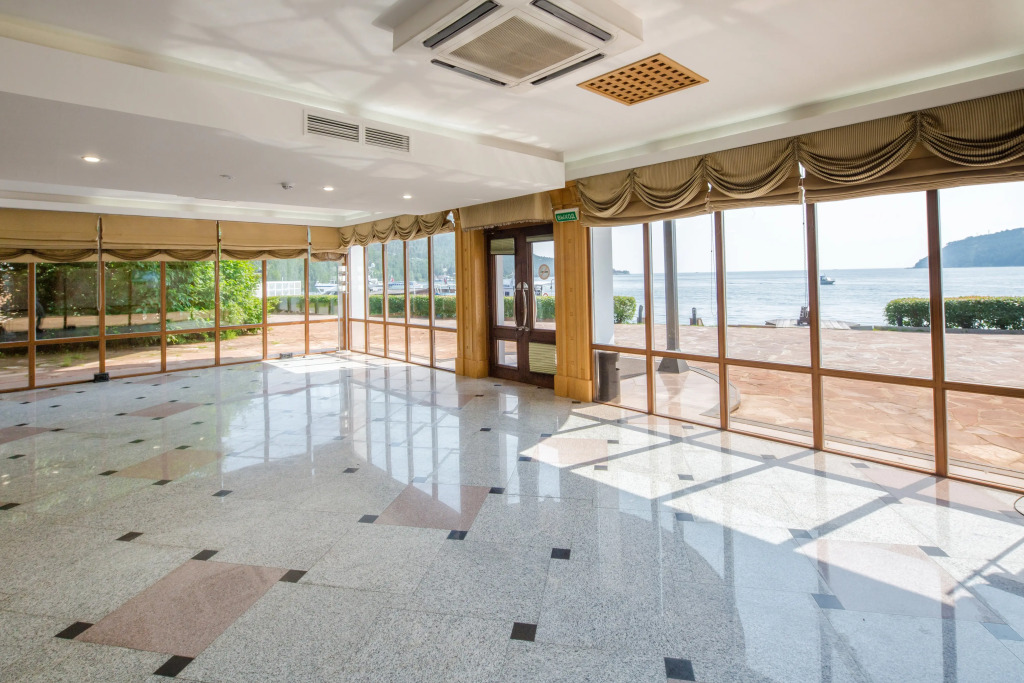 Гостиничный комплекс располагается на береговой линии и имеет прямой доступ к воде, собственный пирс для стоянки кораблей, удалённость от основной трассы и массового скопления туристов, особенно в летний сезон.