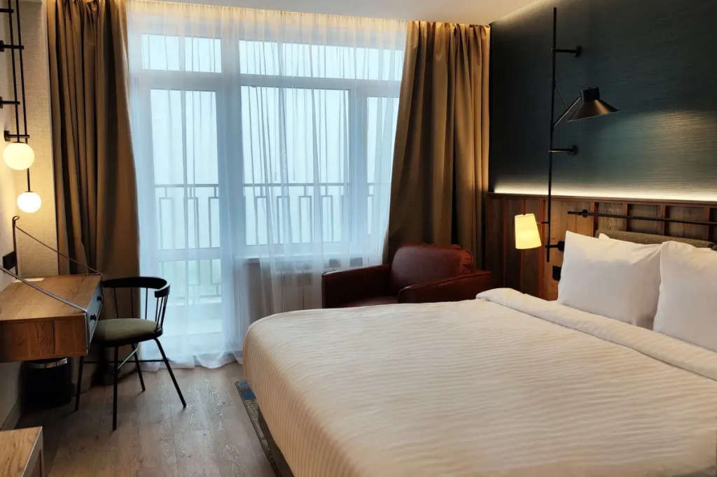 Отель располагает номерным фондом в 72 номера трех различных категорий с двумя конференц-залами и двумя комнатами переговоров, а также рестораном, который легко трансформируется в банкетный зал общей площадью 280 м. кв. В лобби отеля гостей встречает бар с выходом на смотровую площадку и летнюю террасу. Также в отеле предусмотрен небольшой фитнес-зал.