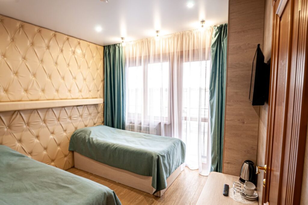 ремонт очень свежий , номер приятный , белье чистое . я в целом рекомендую это место . Однако по выходным в ресторане играет очень громко музыка до 11 и если вы в первом корпусе то …. Из минусов - Интернет не очень, номер чуть меньше чем на фото, но в целом хороший. Кровати !!!! вот это самое интересное , они раздельные , и когда из соединяешь, остаются щели, и матрац едет вперед назад, соответсвенно когда он отъезжает в ноги подушка небольшая итак проваливается между матрасом и стенной.