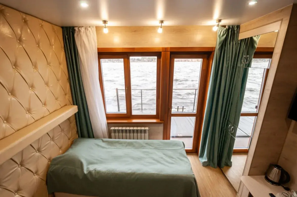 Самое главное - отель прямо на волнах Волги! Вид с утра и ночью шикарный! Жили на дебаркадере, очень уютный ремонт, всё работает, ремонт свежий. Администратор встречает как родных, завтрак включён в стоимость номера и он максимально огромный и вкусный, в общем, теперь хотим посетить отель летом и РЕКОМЕНДУЕМ! Немного пыльно в ванной