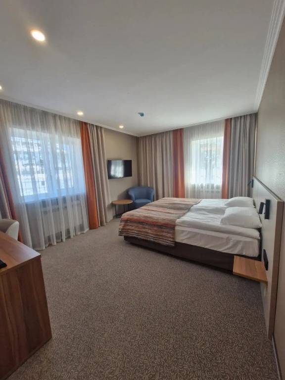 Номер уютно обставлен и оснащён необходимым, чтобы отдохнуть после долгого и насыщенного дня. Имеются телевизор. Оснащение зависит от выбранной категории номера.