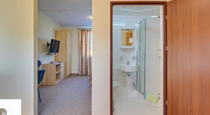 В номере вы найдёте душ и телевизор. Оснащение зависит от выбранной категории номера.