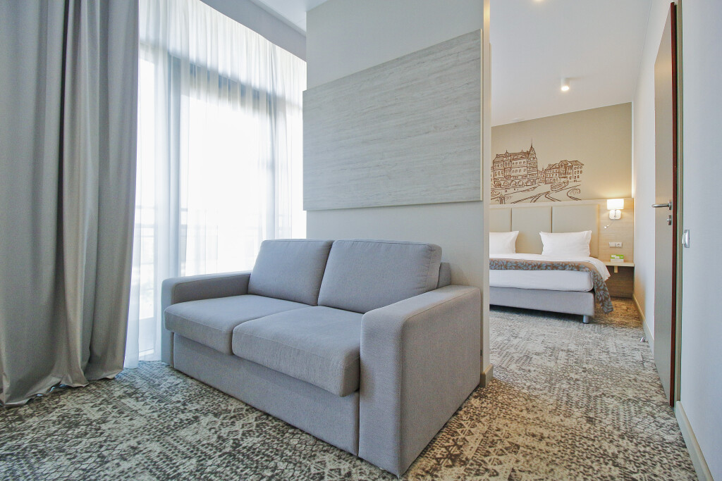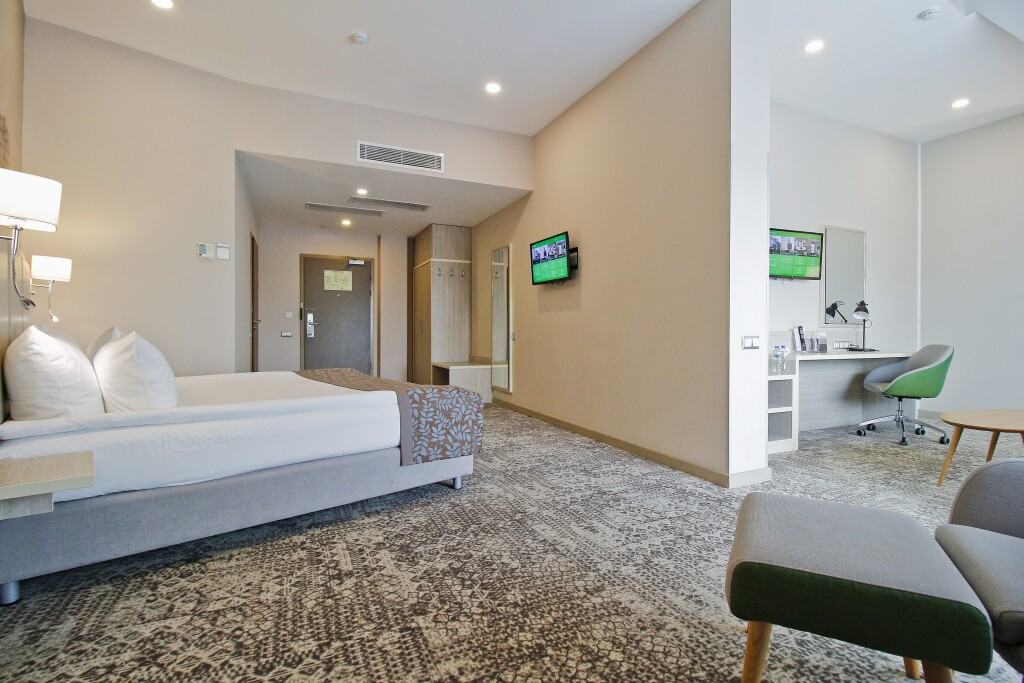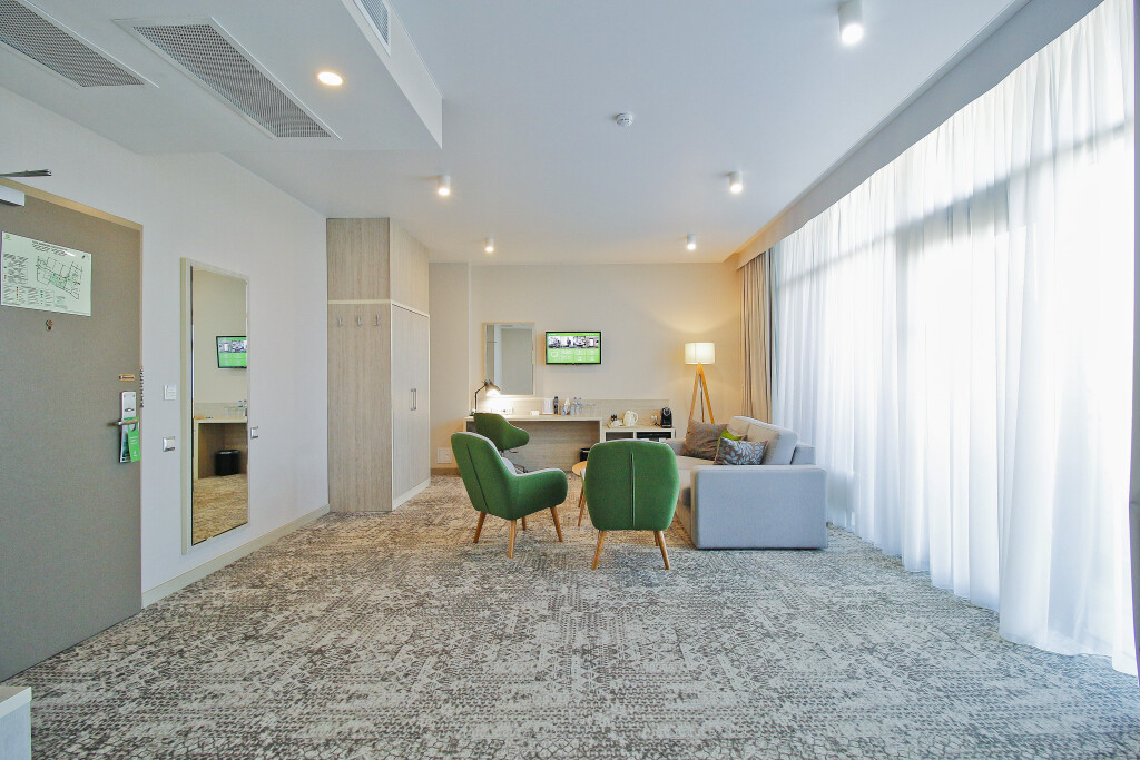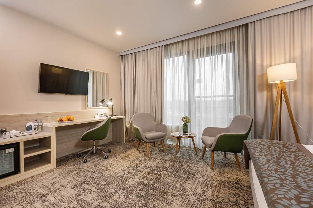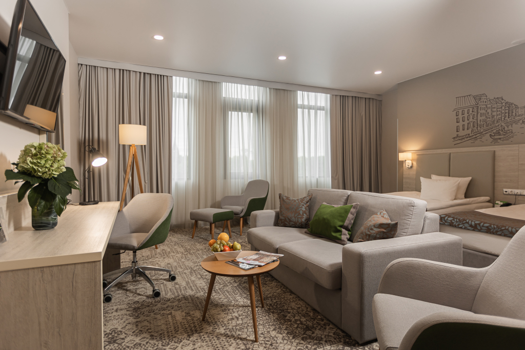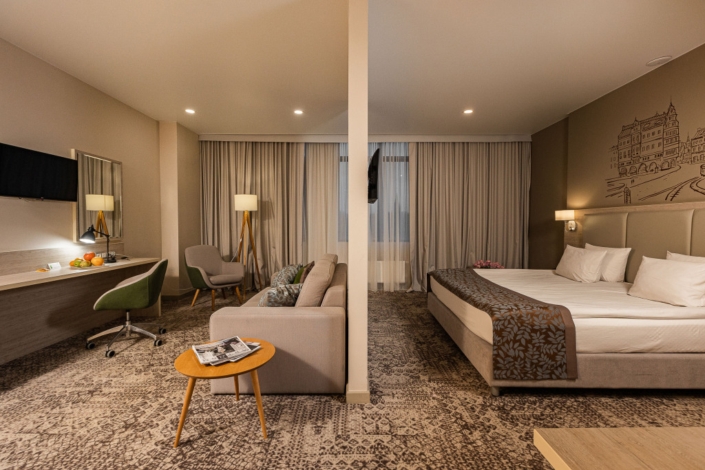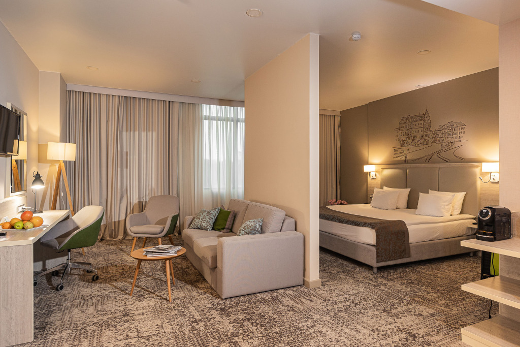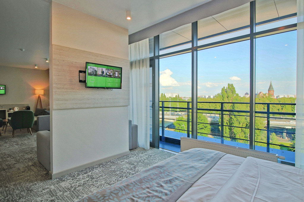 В отеле для гостей представлено 125 номеров и 9 видовых премиальных апартаментов с полноценной кухонной зоной.