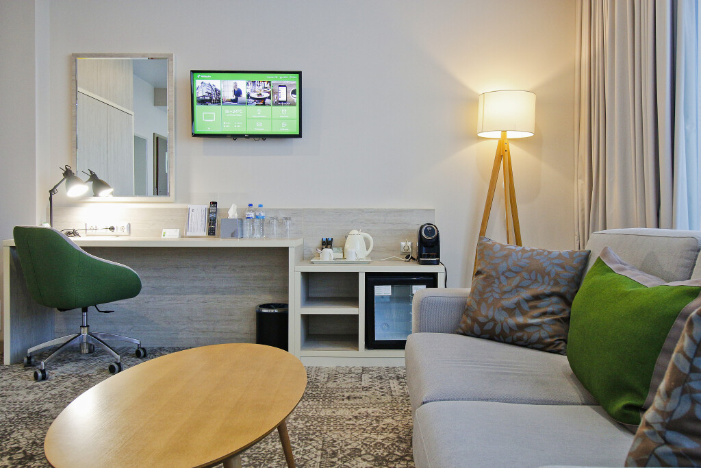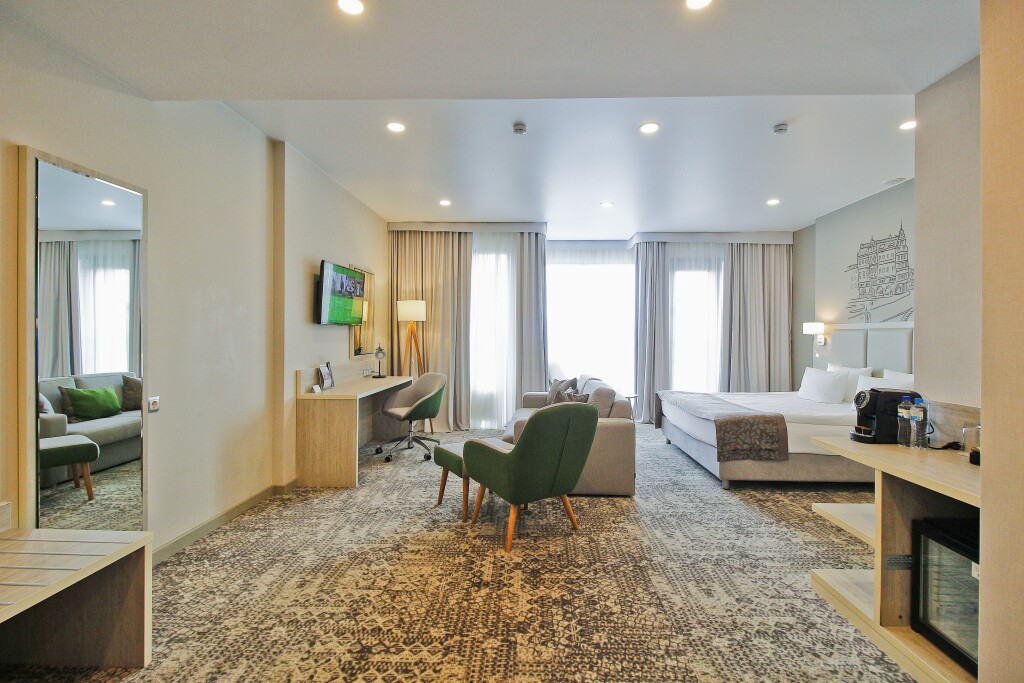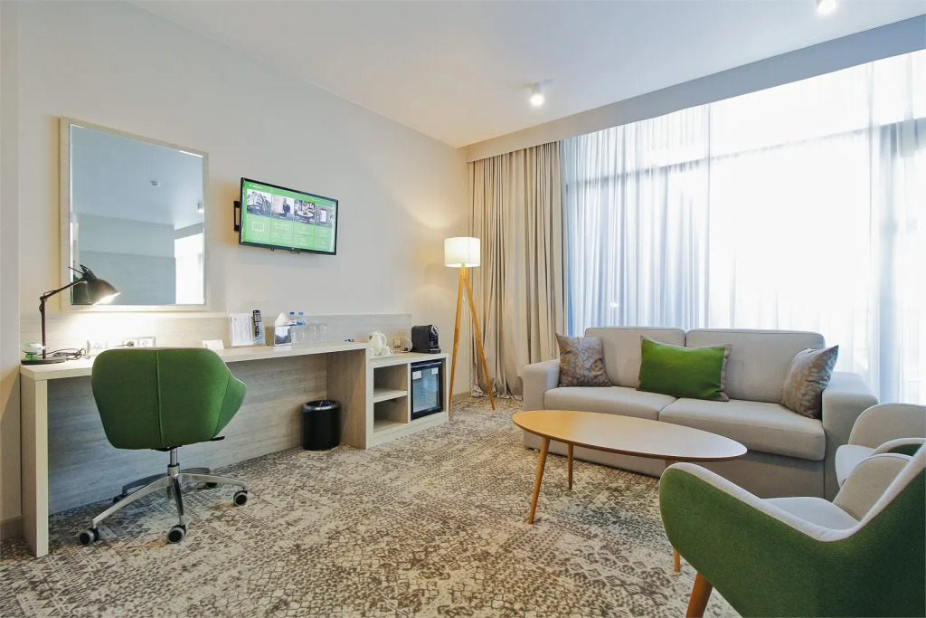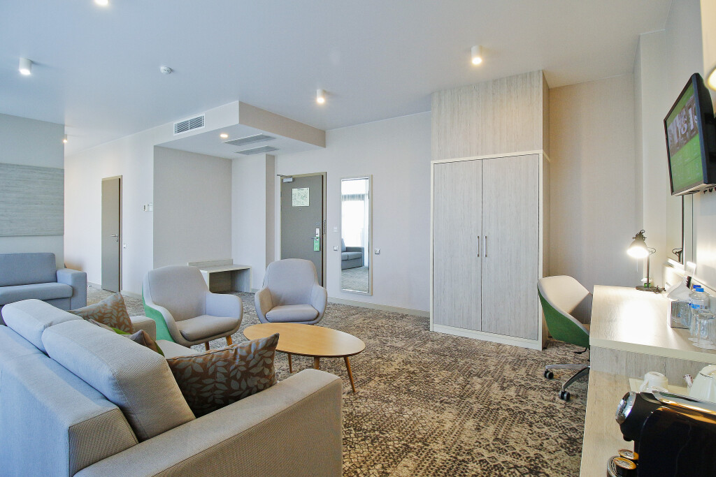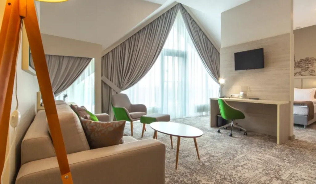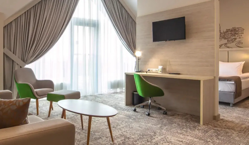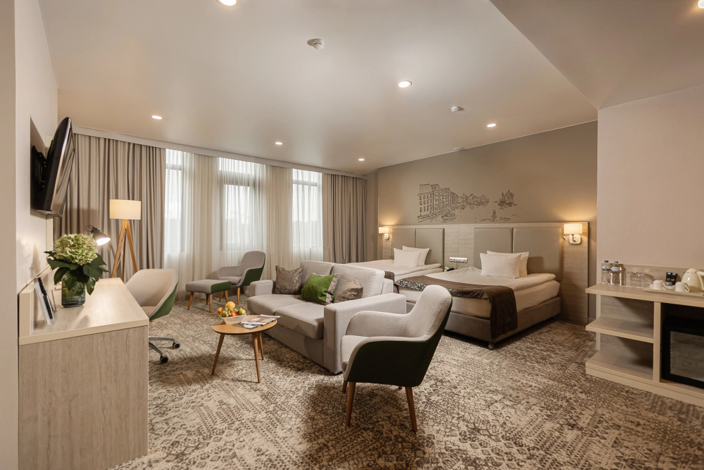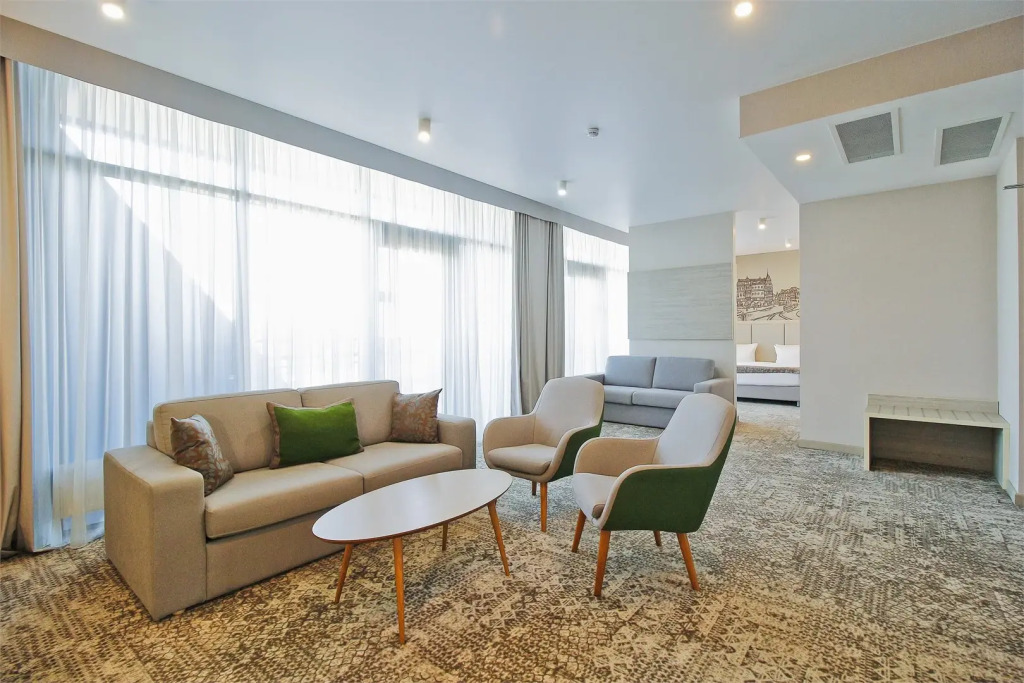 В отеле для гостей представлено 125 номеров и 9 видовых премиальных апартаментов с полноценной кухонной зоной.