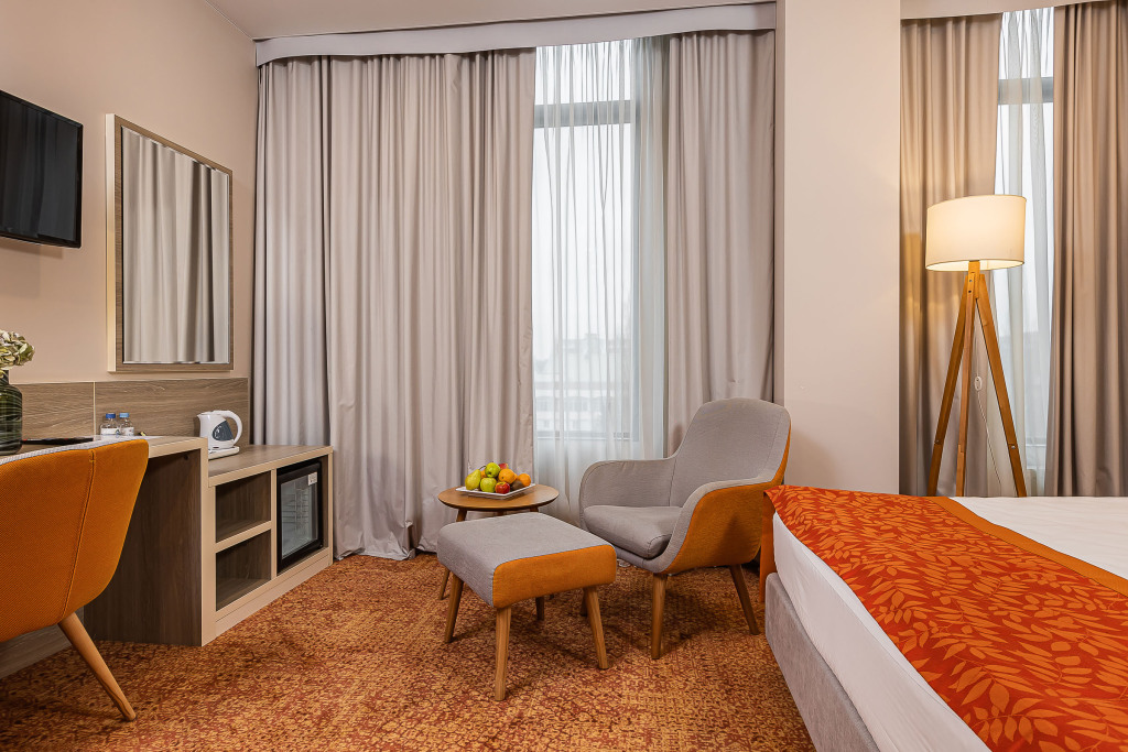 В номере гостей ждут телевизор, мини-бар, халат и тапочки. Оснащение зависит от выбранной категории номера.