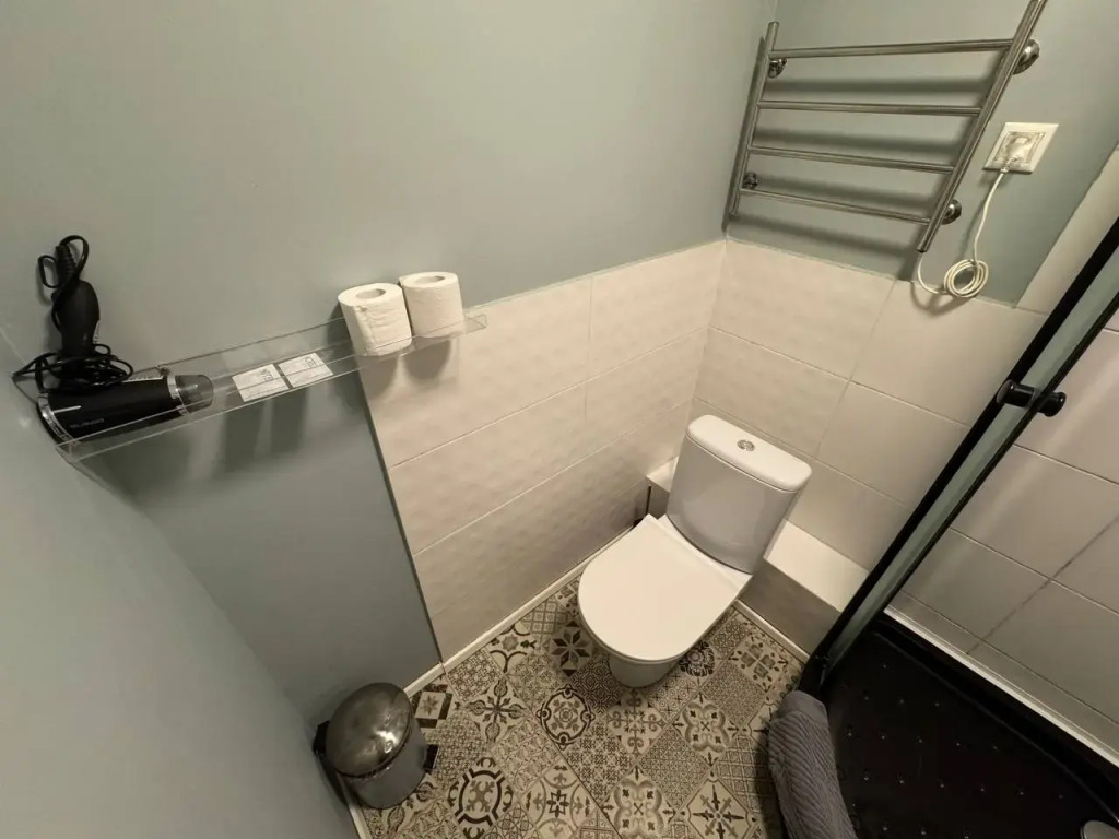 Номера категории «Эконом» отличаются тем, что санузел в них общий на два номера.