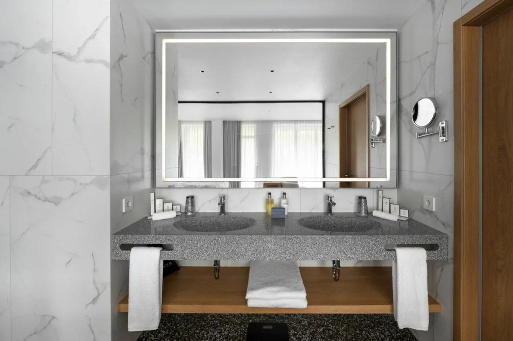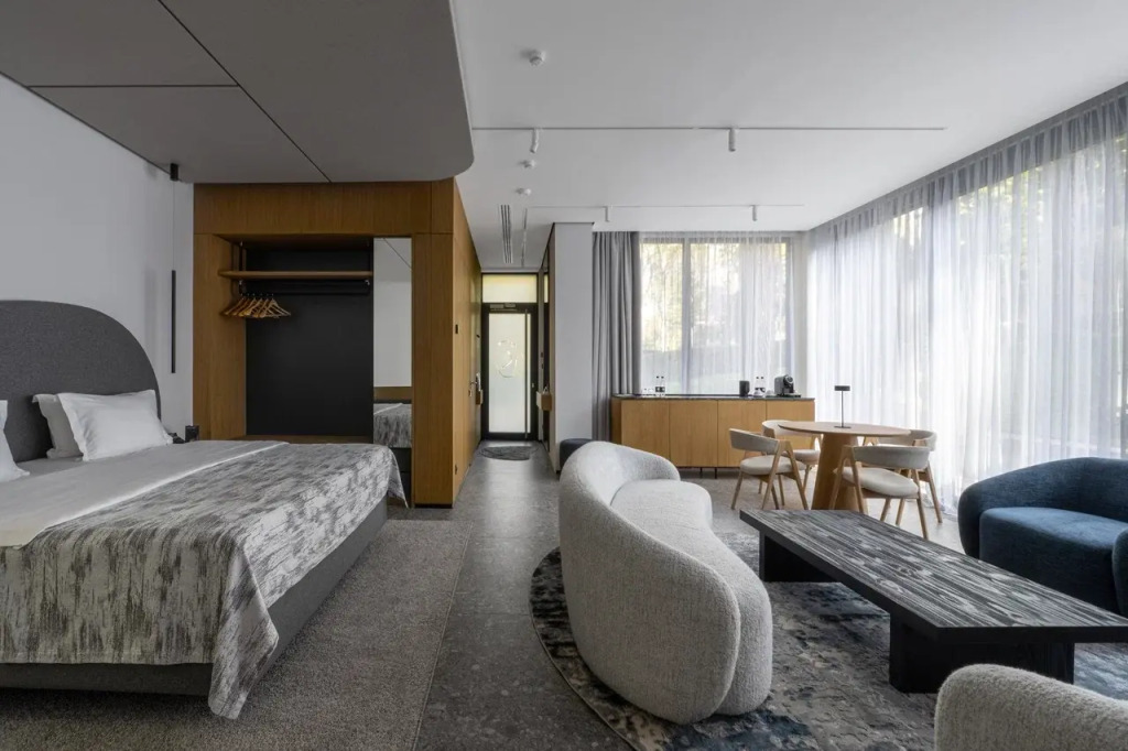 Номер уютно обставлен и оснащён необходимым, чтобы отдохнуть после долгого и насыщенного дня. Имеются халат. Оснащение зависит от выбранной категории номера.