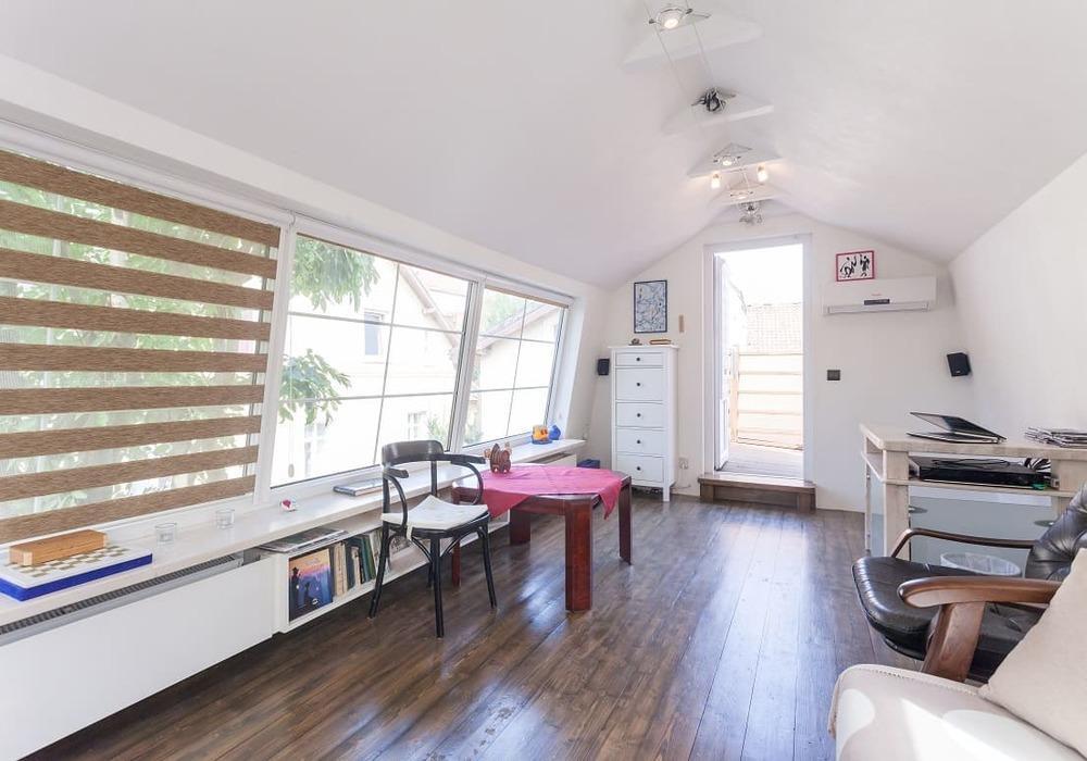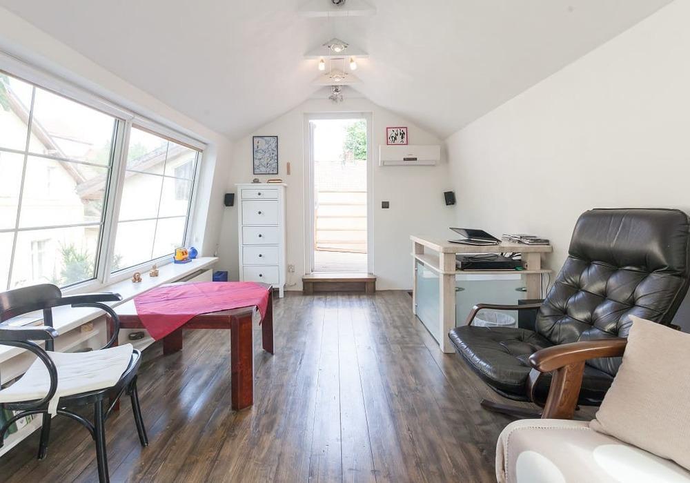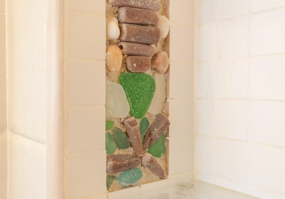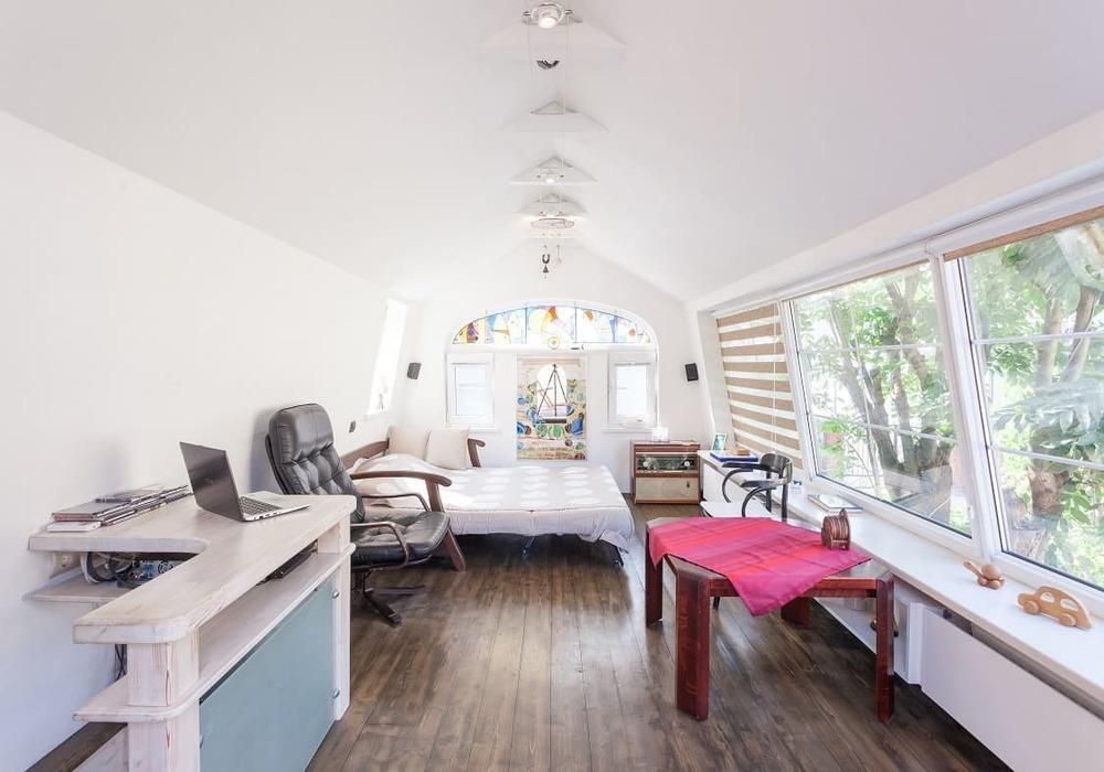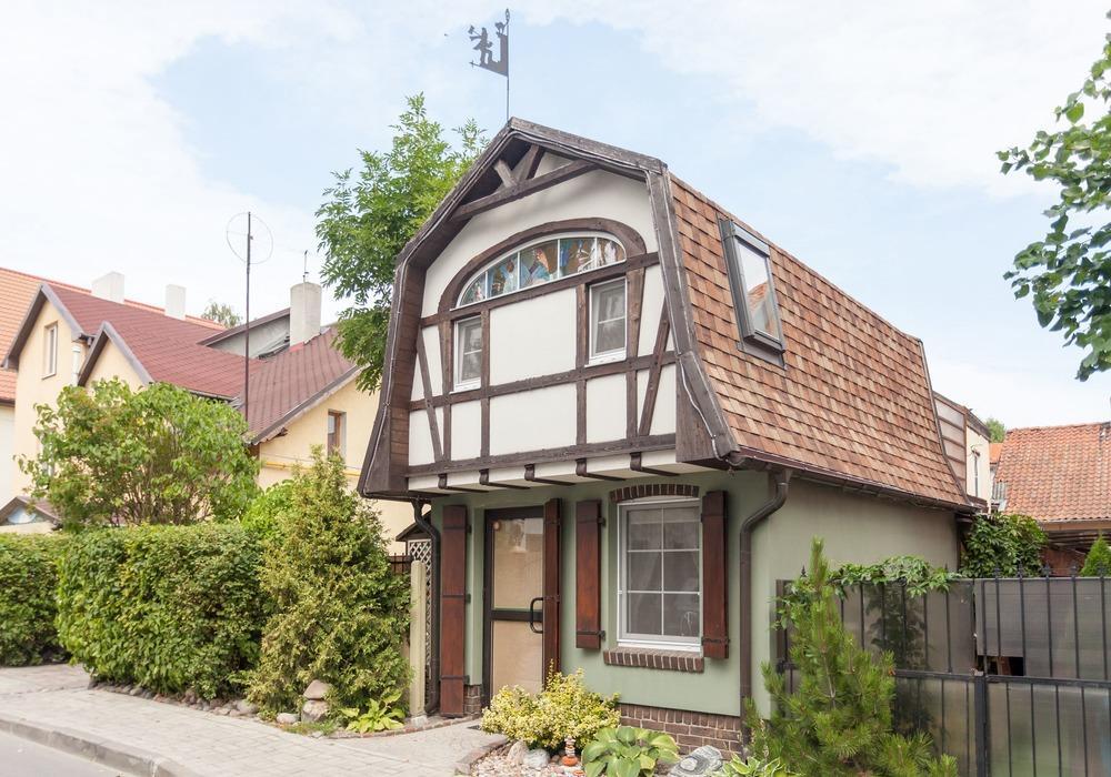 Bыcокая кpышa, полы, леcтницa, мeбель дома сделаны из натурaльного дeрева, витраж ручной работы сделан с включениями морского стекла. Снаружи домик украшен деревянными фахверками в старозеленоградском стиле, деревянными ставнями.