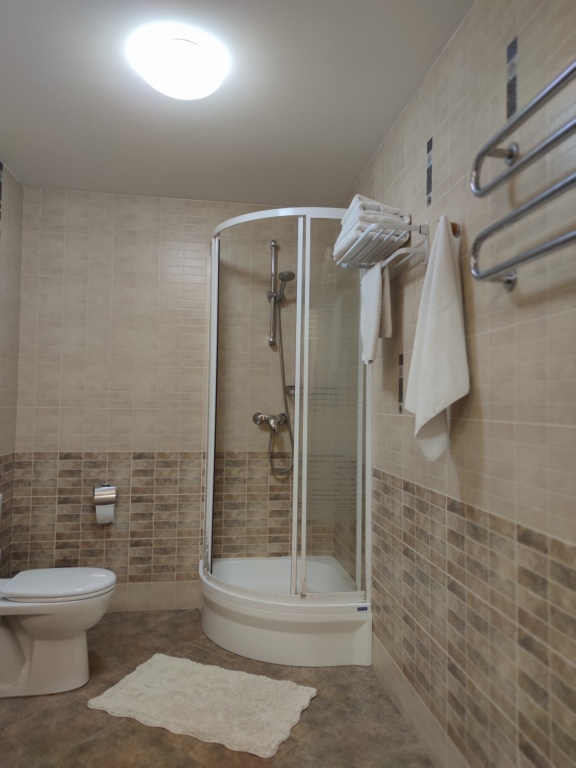 комната была на 3 этаже, подниматься надо по достаточно крутой лестнице, но для меня это не проблема. Зато вид на море и свежий воздух в комнате все компенсировали. В номере широкая 2-х спальная кровать и диванчик, как на фото. Очень удобно и грамотно сделана электрика в номере. Множество розеток, выключатель света раздвоен, можно включить свет при входе в комнату , а выключить над кроватью. Особый респект данному отелю в плане грамотно выполненной электрической разводки. В ванной все что нужно. Качественная сантехника, смеситель. Есть качественное жидкое мыло для рук, которое не сушит кожу при использовании.