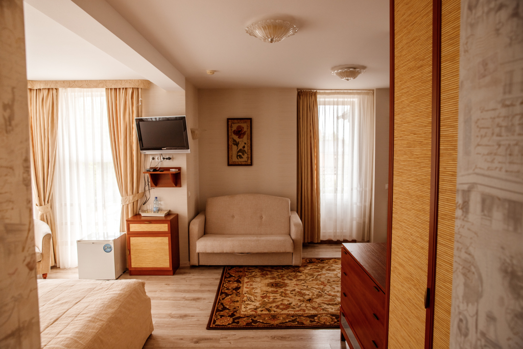 Номера просторные и светлые, оборудованы всем необходимым (кондиционер, холодильник, wi-fi).