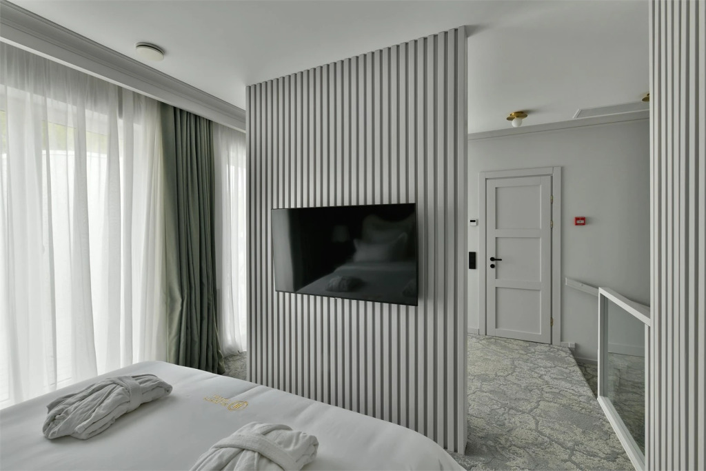 Удобно для гостей с ограниченными возможностями: на верхние этажи гостей поднимает лифт. А ещё в распоряжении гостей пресса.