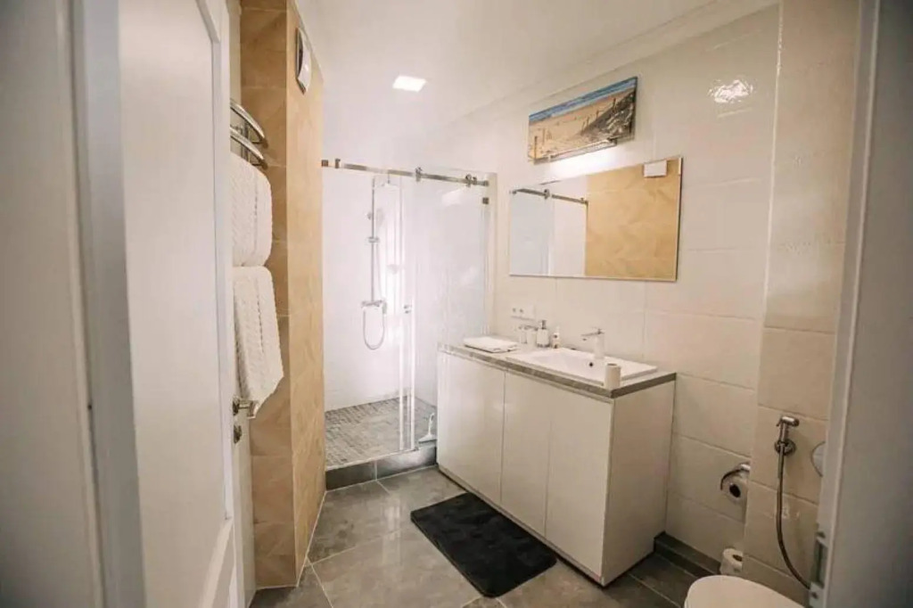 В номере вы найдёте душ, халат и тапочки. Оснащение зависит от выбранной категории номера.