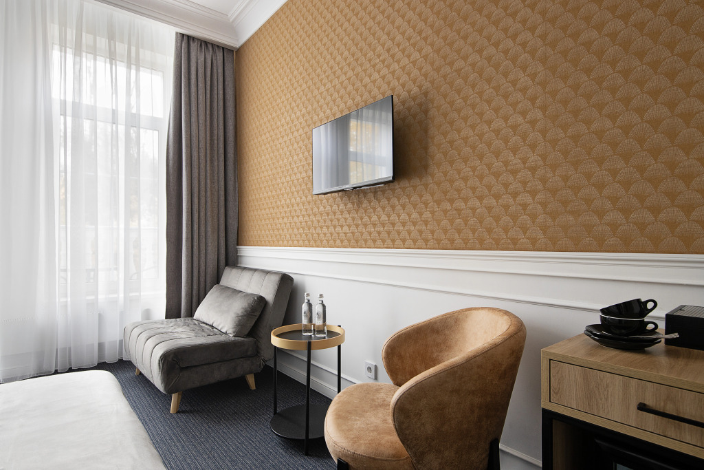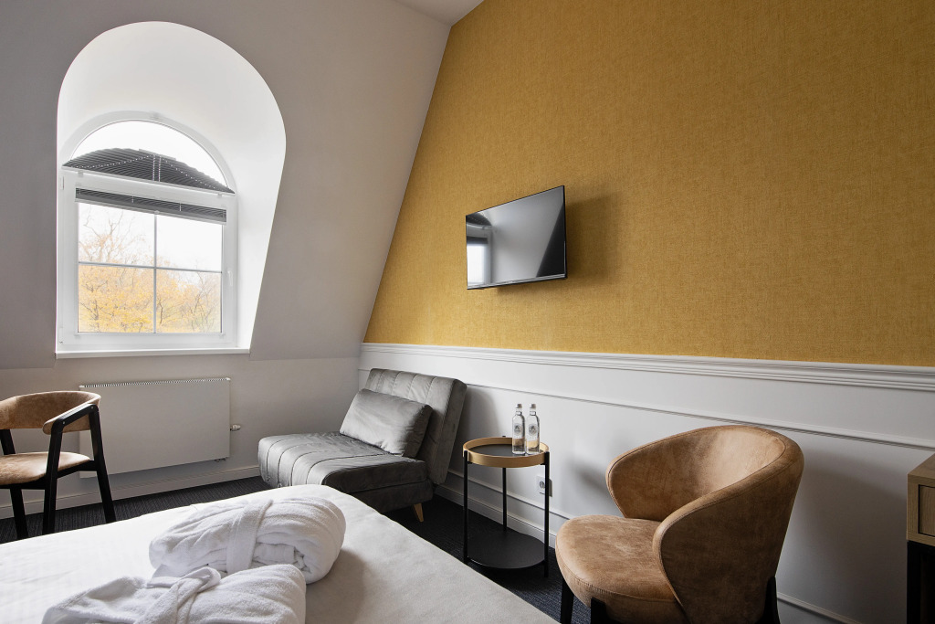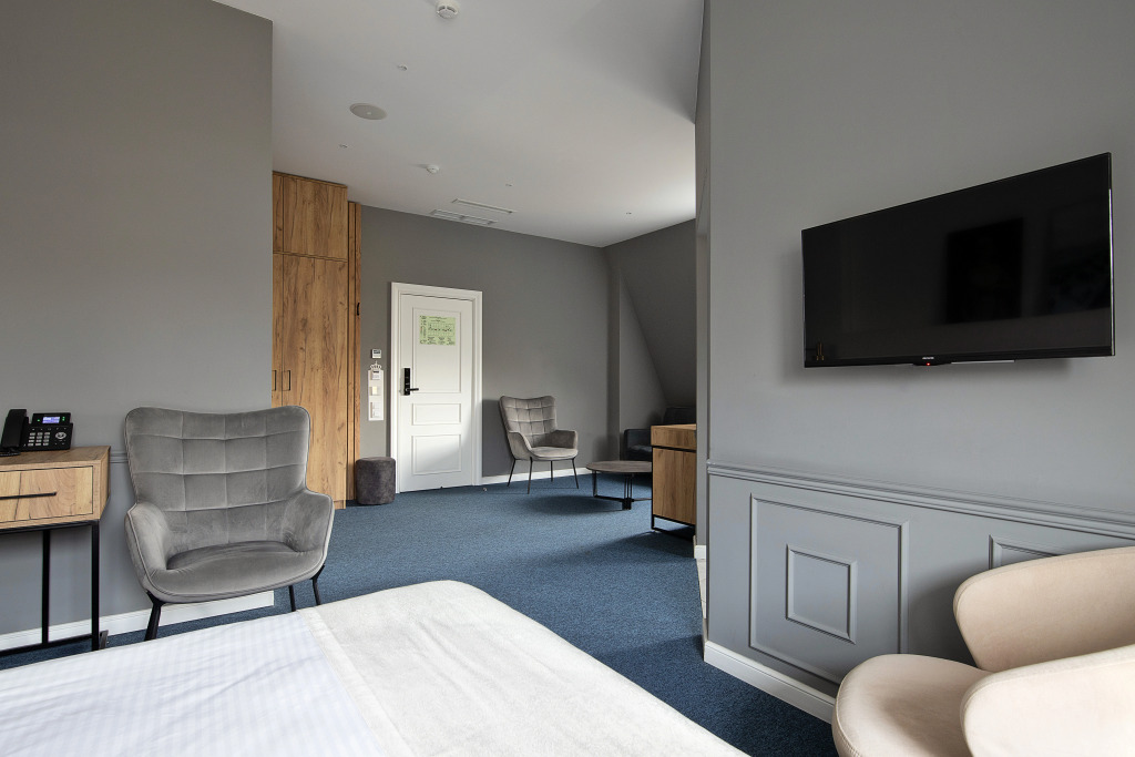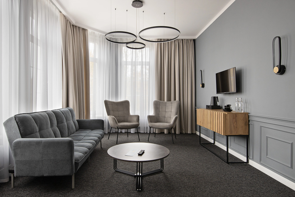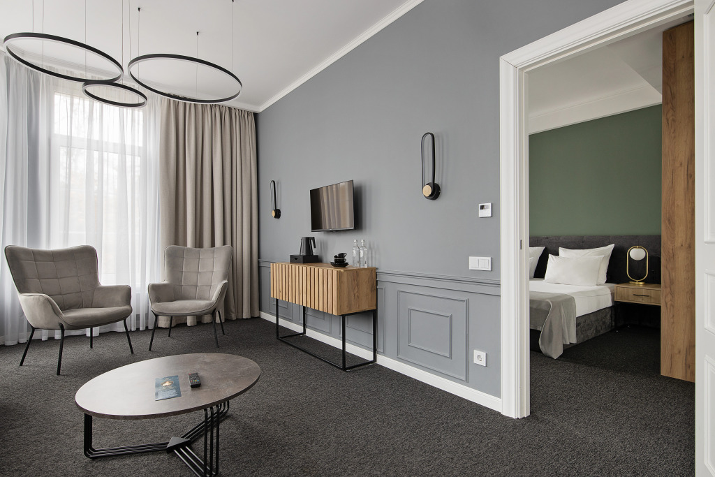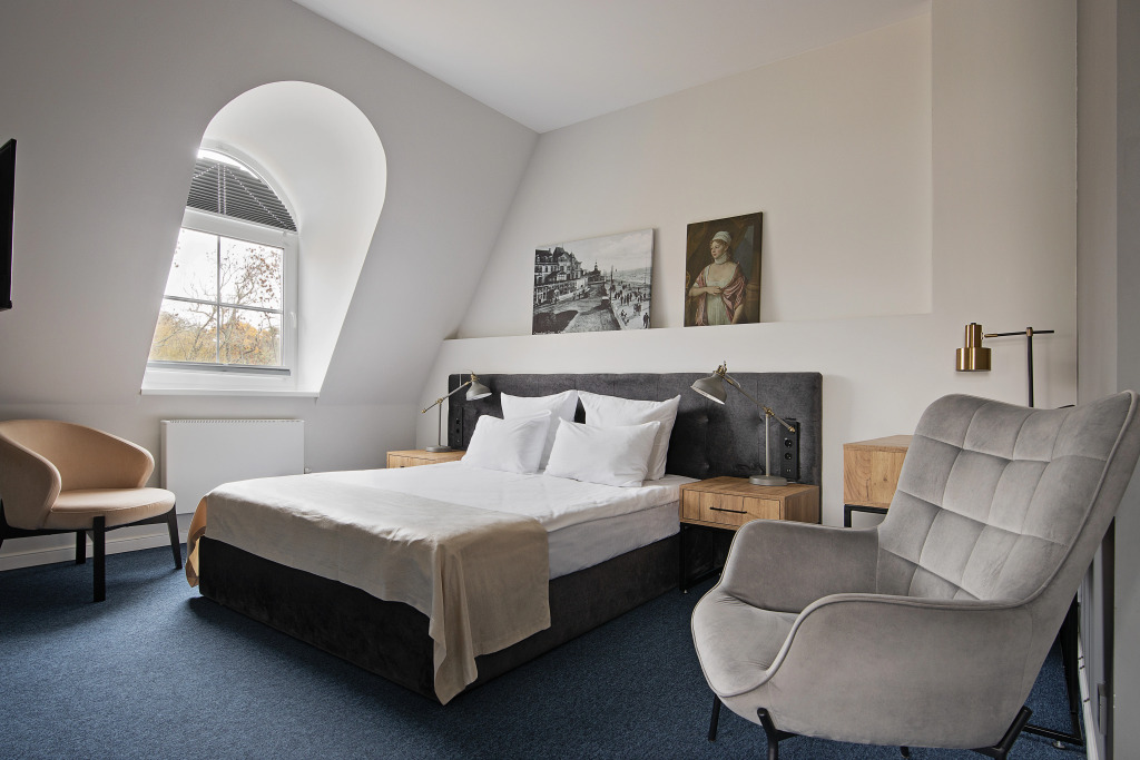 История отеля началась в первой половине XX века. В здании отеля находится ресторан «Королева Луиза», где представлены блюда европейской кухни, а также СПА-комплекс с разнообразным выбором процедур и акватермальной зоной: хаммам, финская сауна, джакузи, relax-зона.