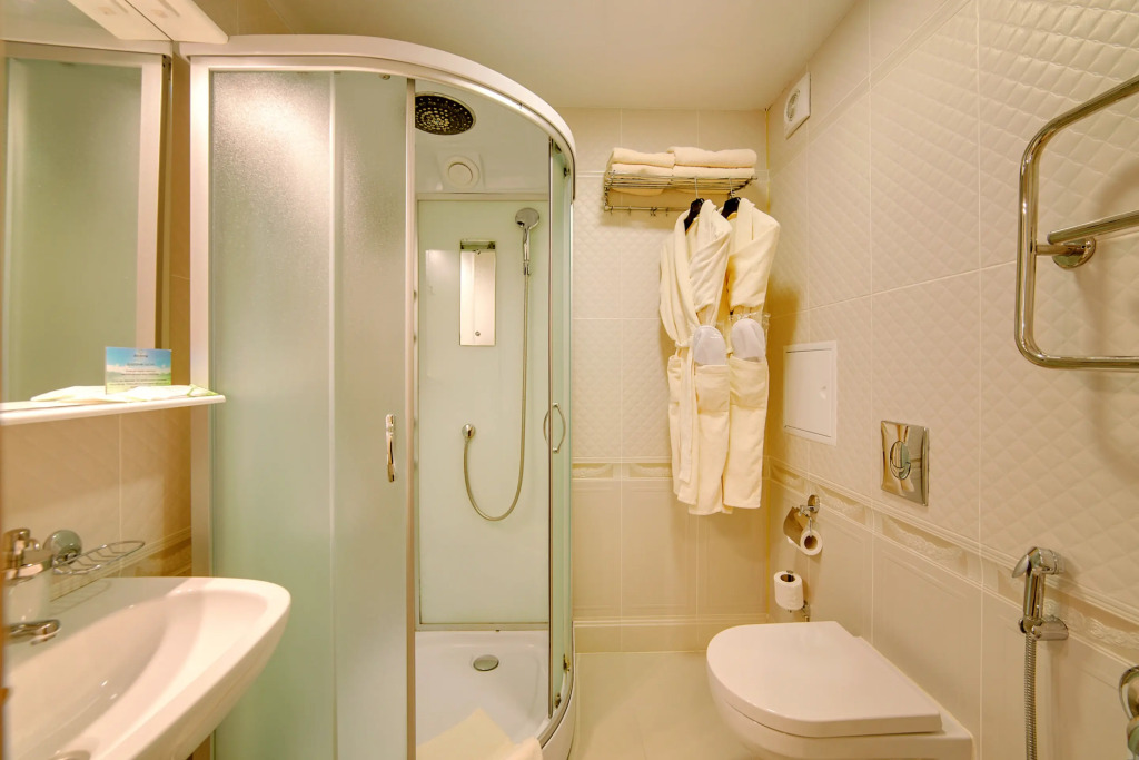Полноценные двуспальные кровати в отеле имеются только в номерах категории «Люкс». Во всех остальных номерах, если обещана двуспальная кровать — две односпальные кровати под общим наматрасником.