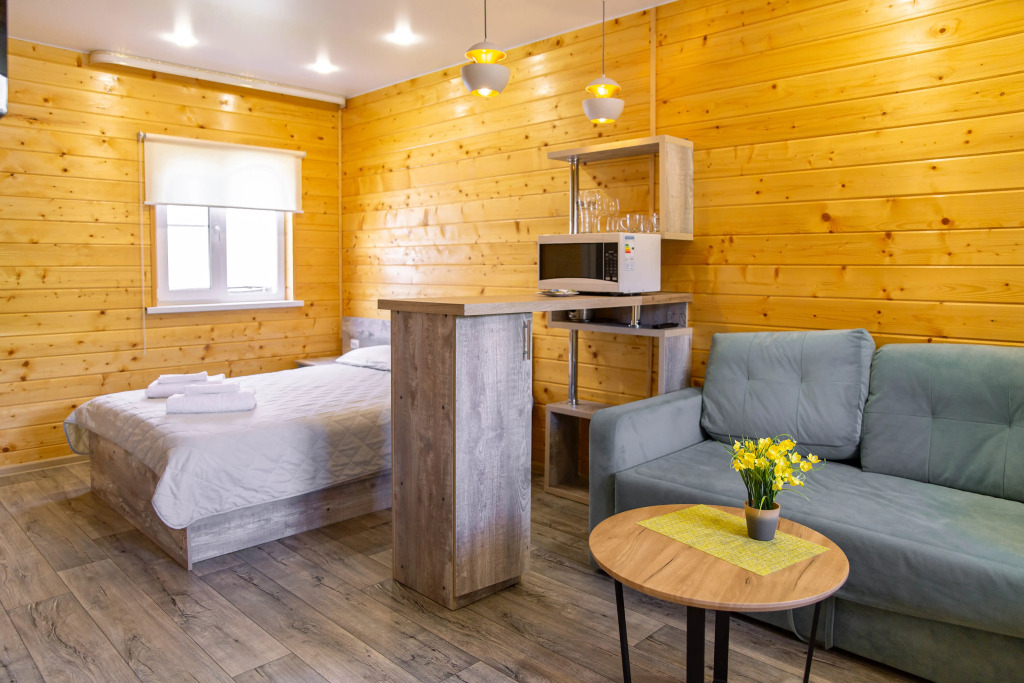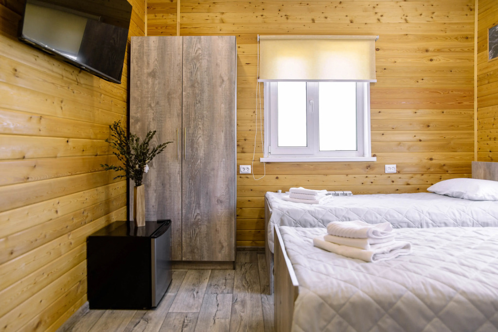 В номере гостей ждут телевизор и халат. Перечисленные услуги есть не во всех номерах.