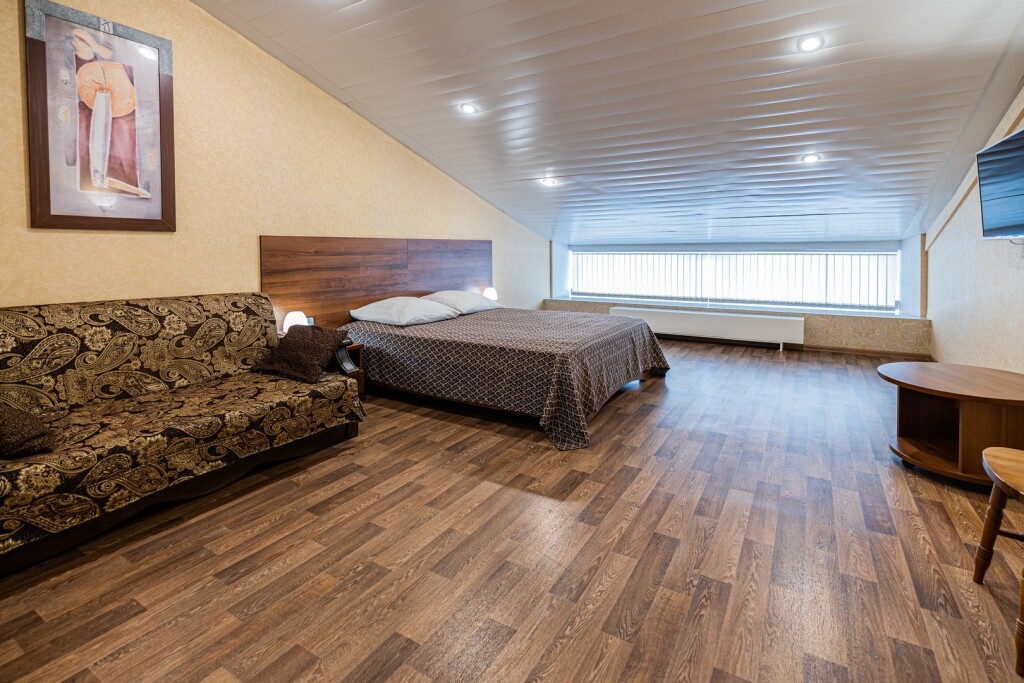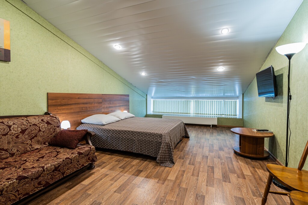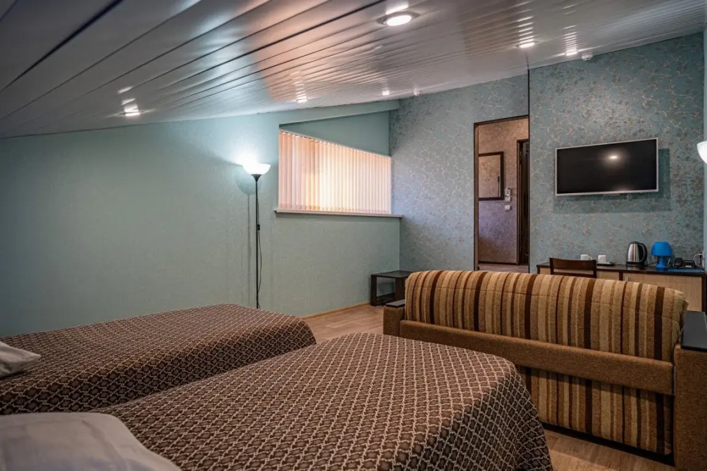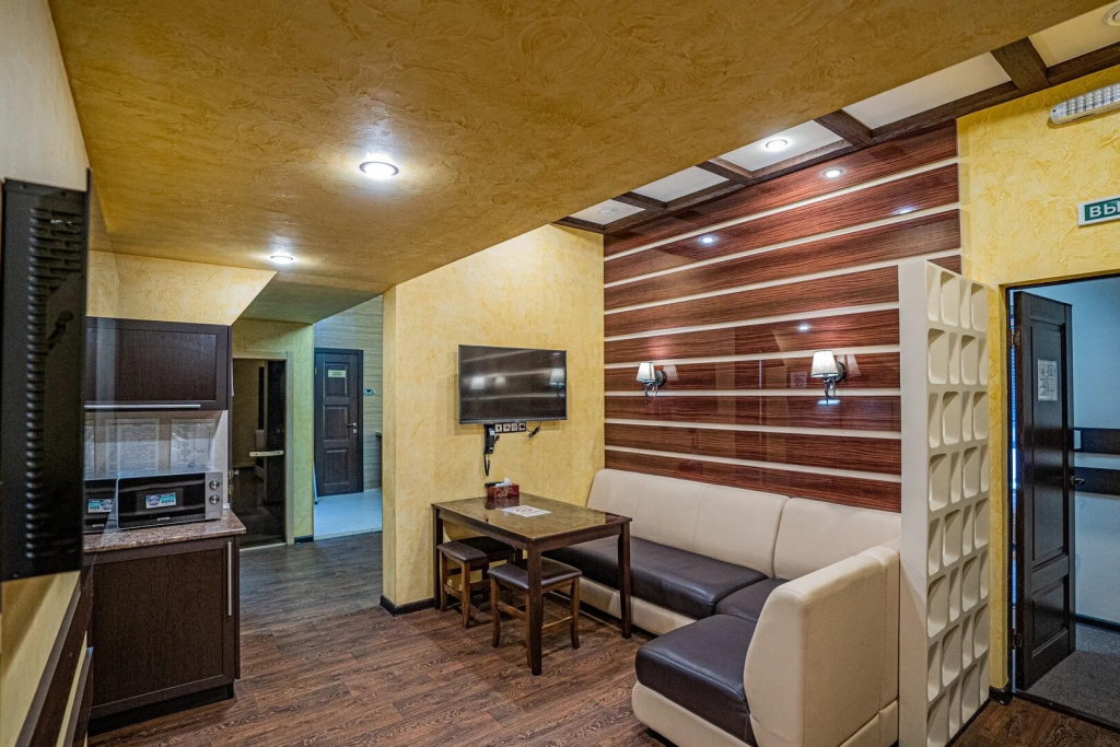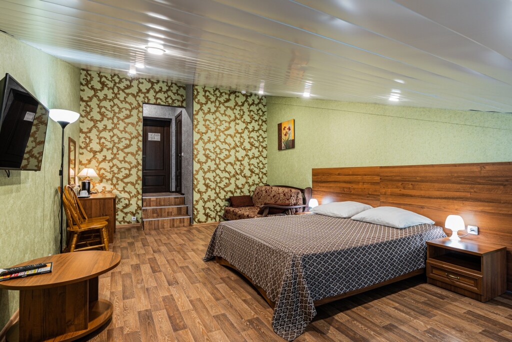 В номере гостей ждут телевизор и халат. Перечисленные услуги есть не во всех номерах.