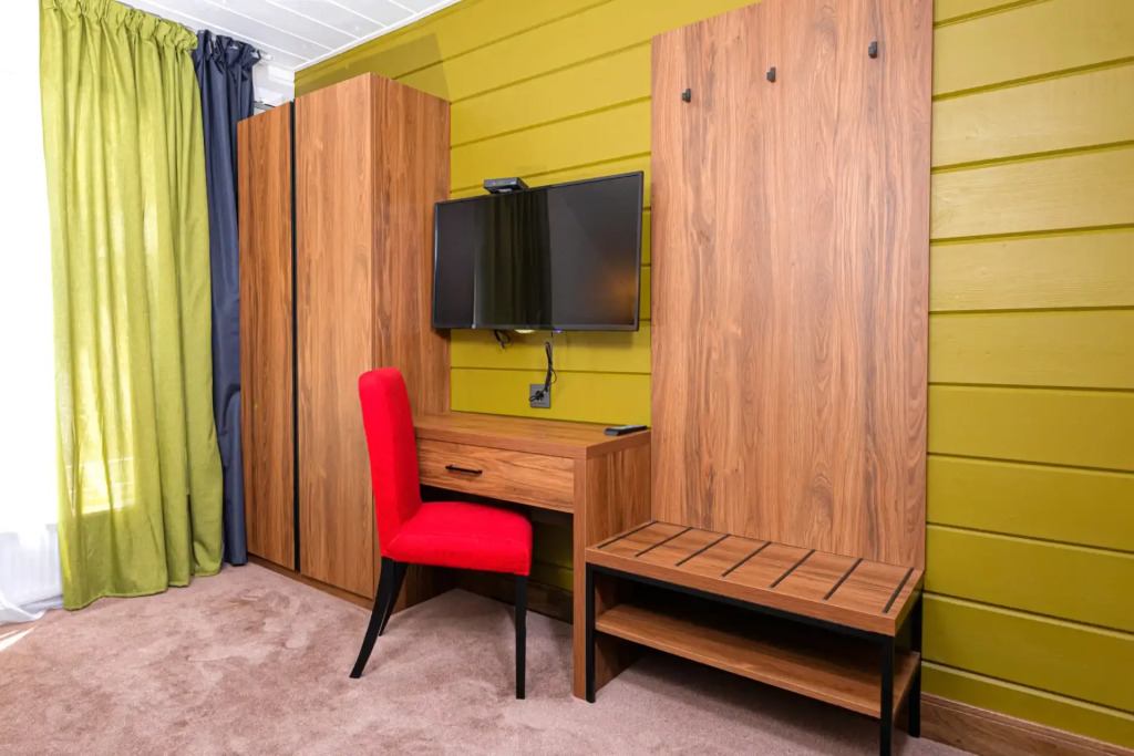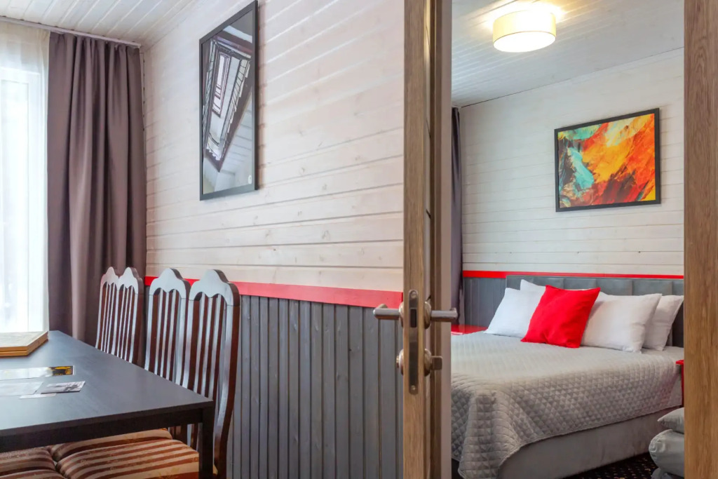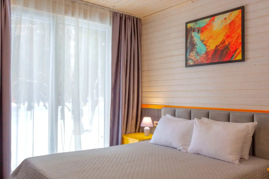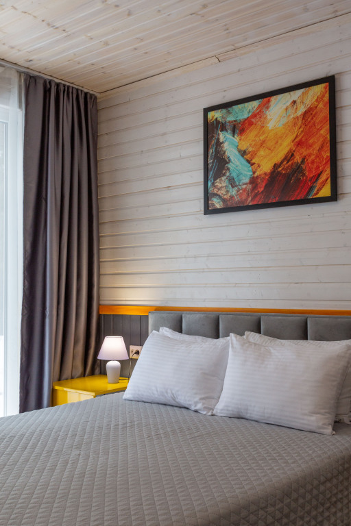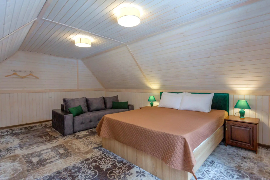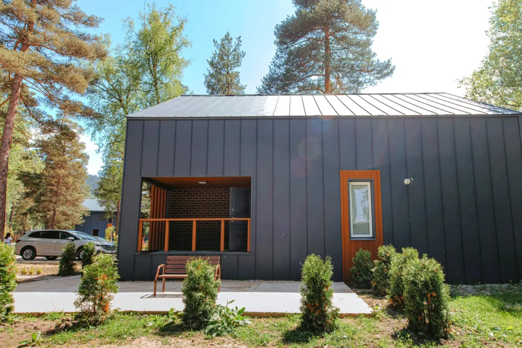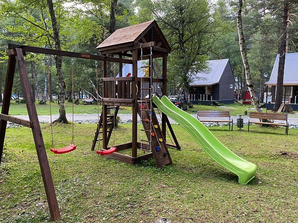 На территории есть детская и спортивная площадки, бесплатный Wi-Fi. В распоряжении гостей есть СПА зона, в которую входят баня и купель на свежем воздухе.