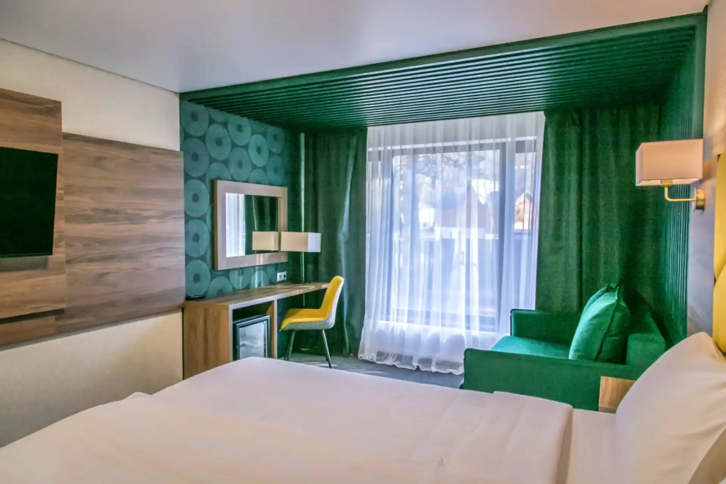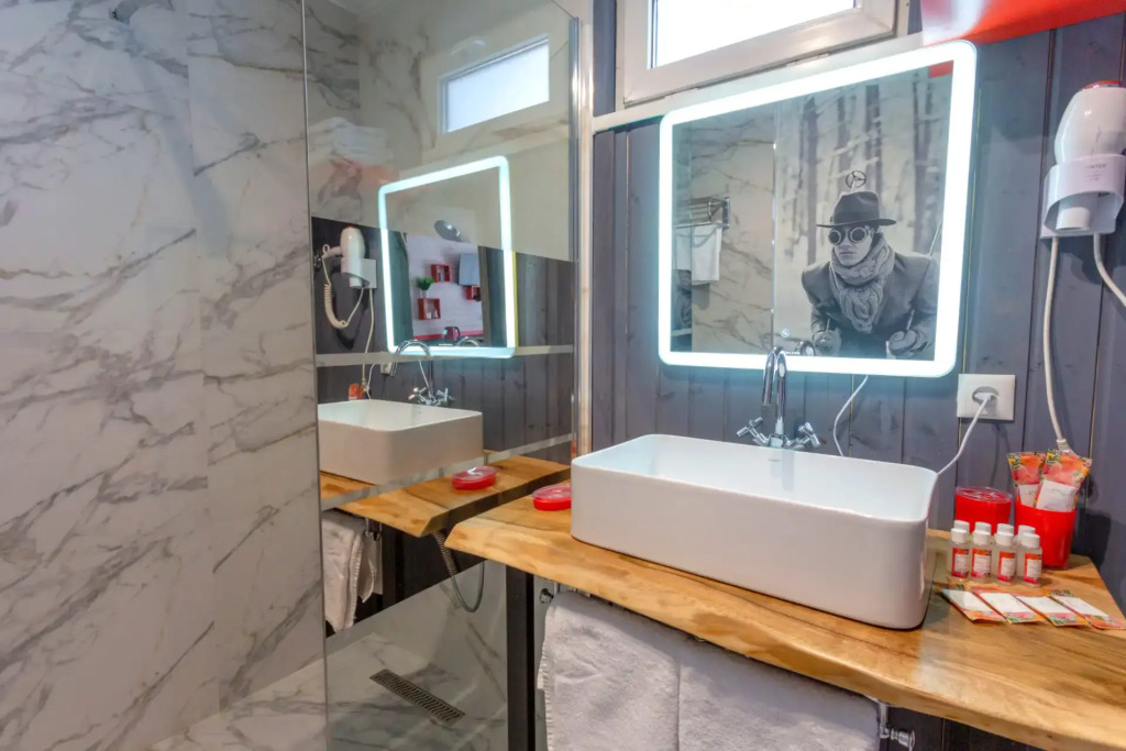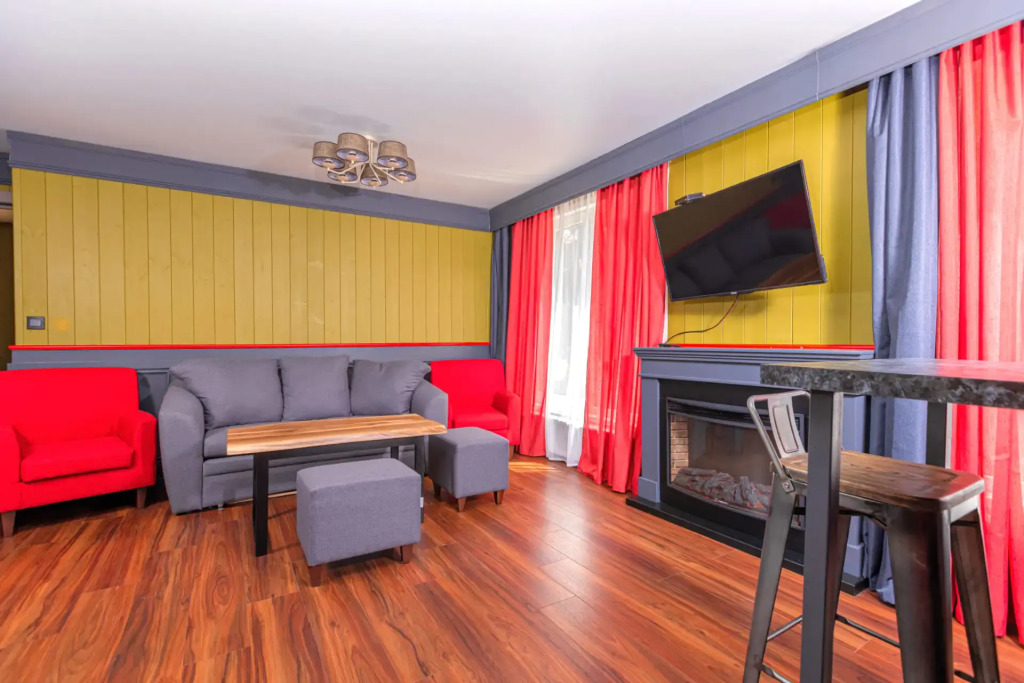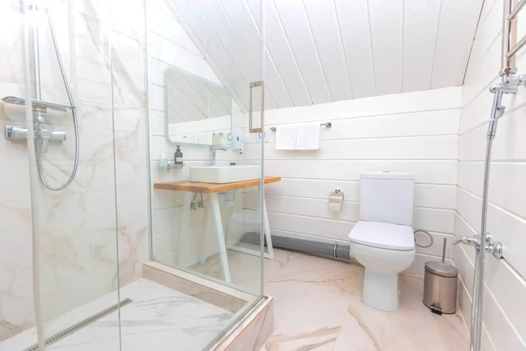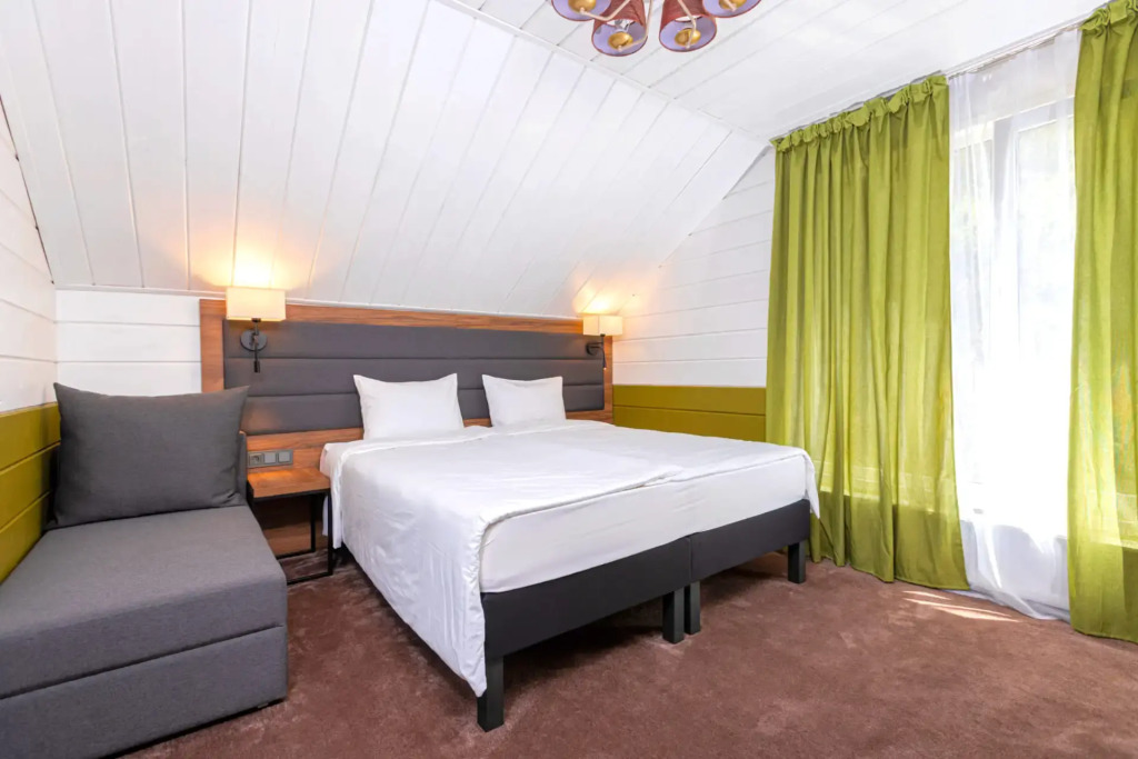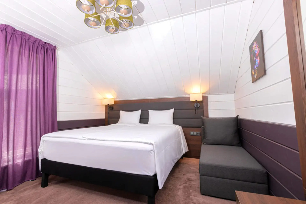 На территории есть детская и спортивная площадки, бесплатный Wi-Fi. В распоряжении гостей есть СПА зона, в которую входят баня и купель на свежем воздухе.