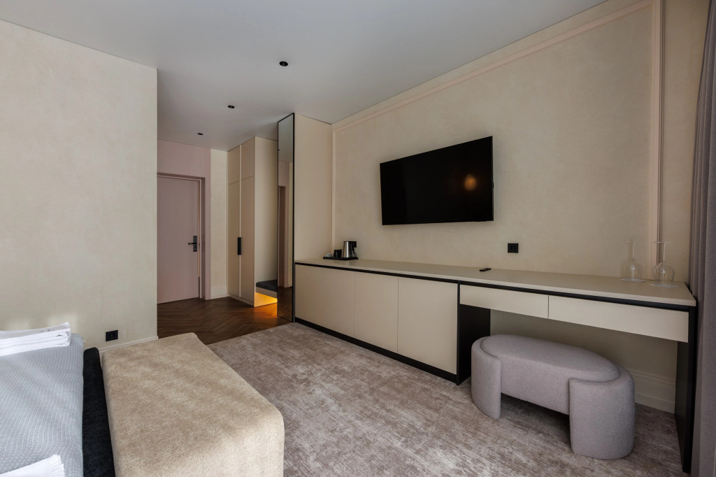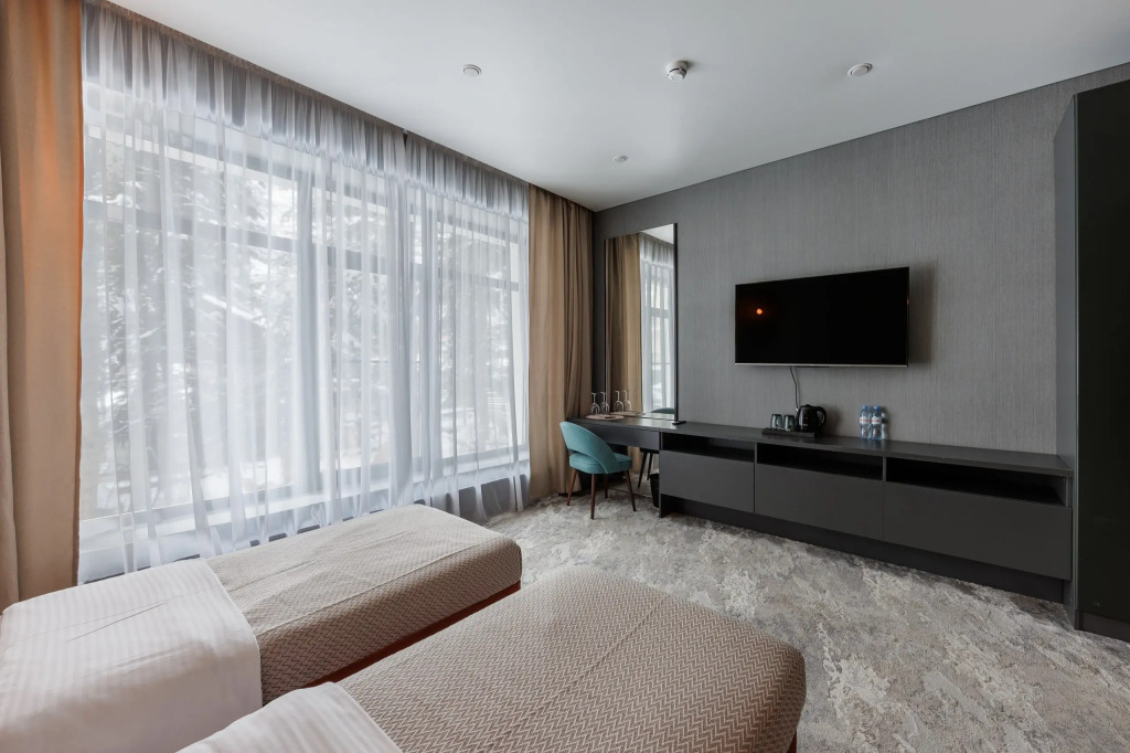 В номере гостей ждут телевизор и халат. Перечисленные услуги есть не во всех номерах.