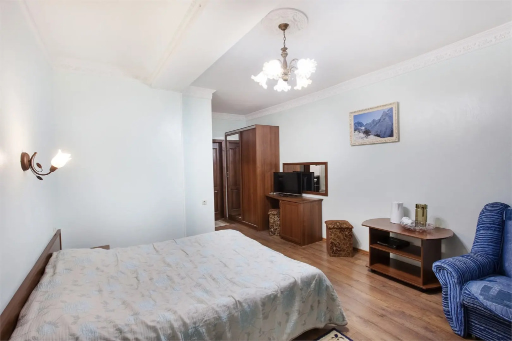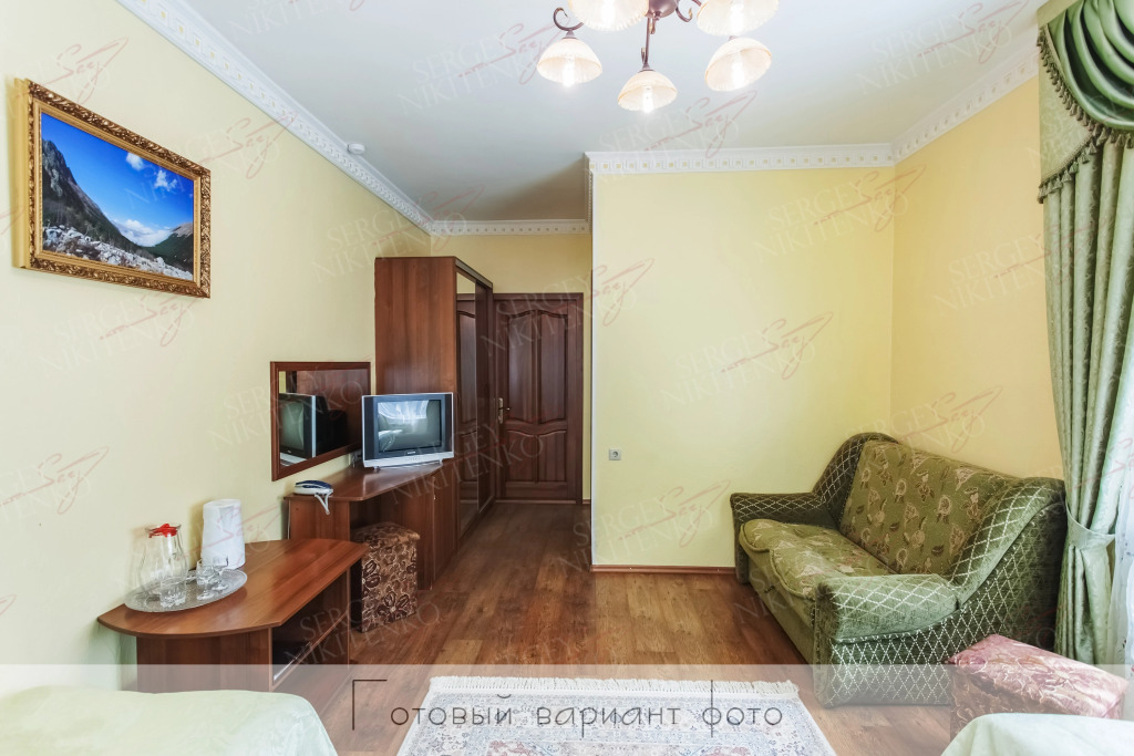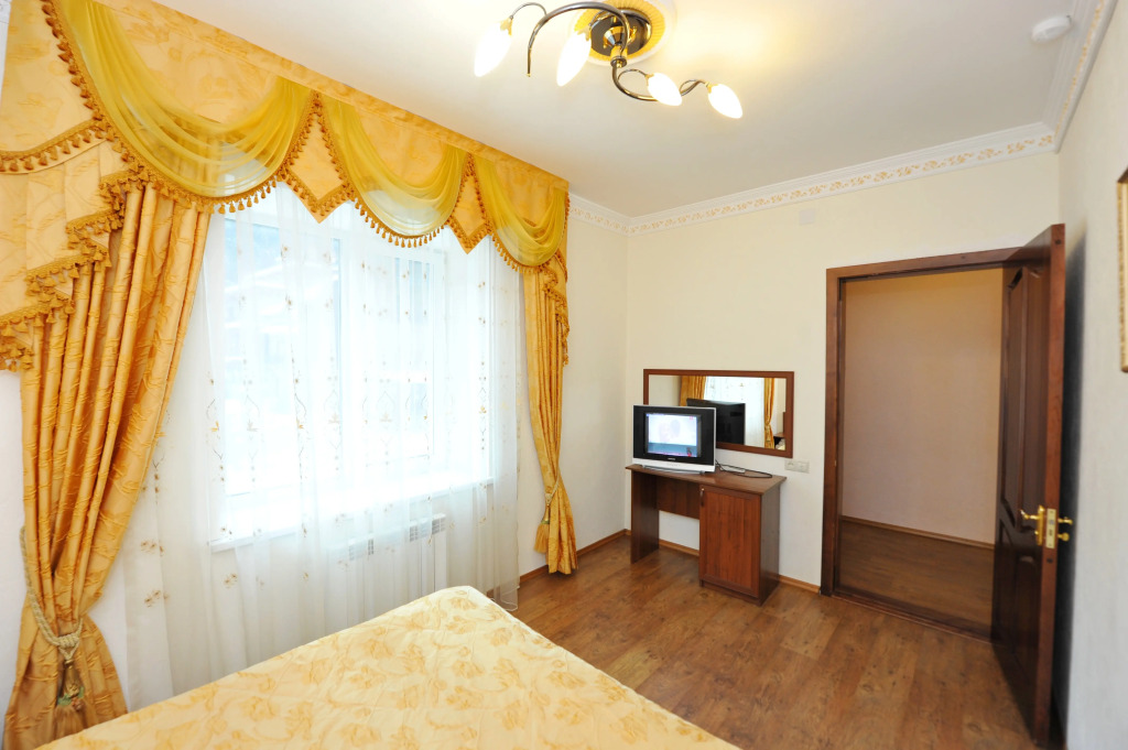 В номере вы найдёте телевизор и мини-бар. Оснащение зависит от выбранной категории номера.