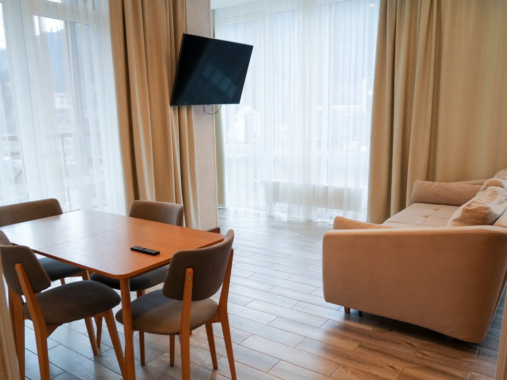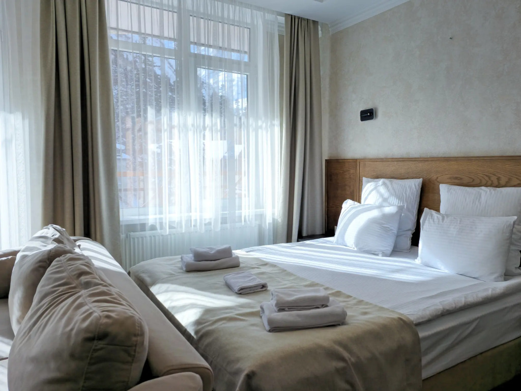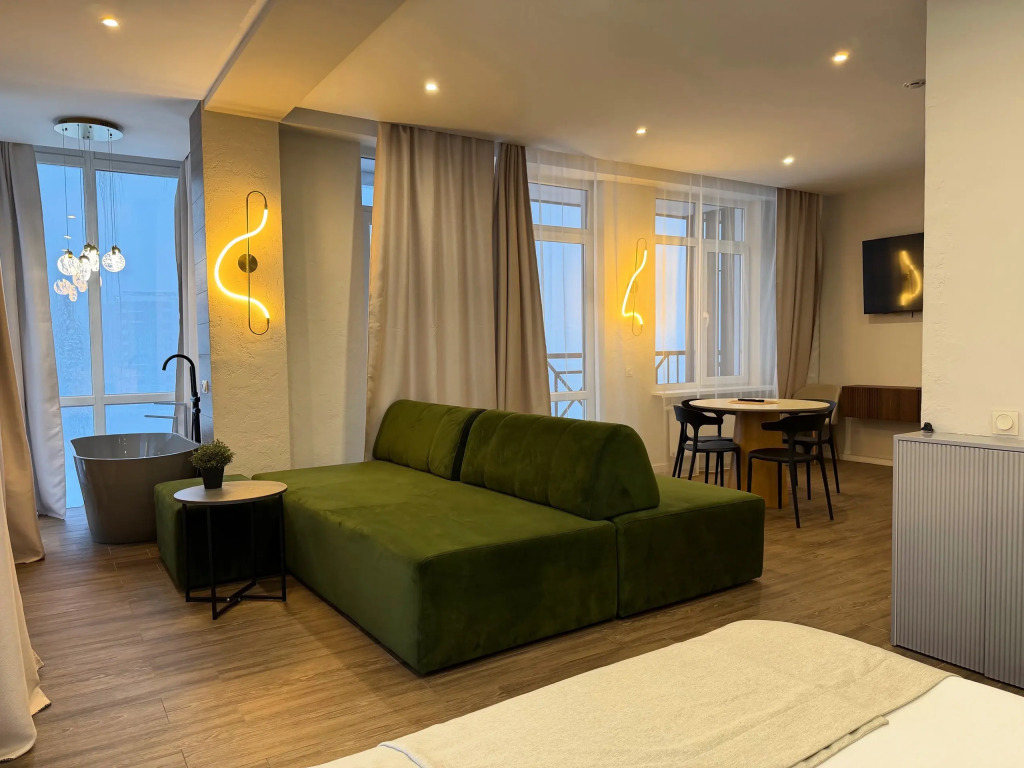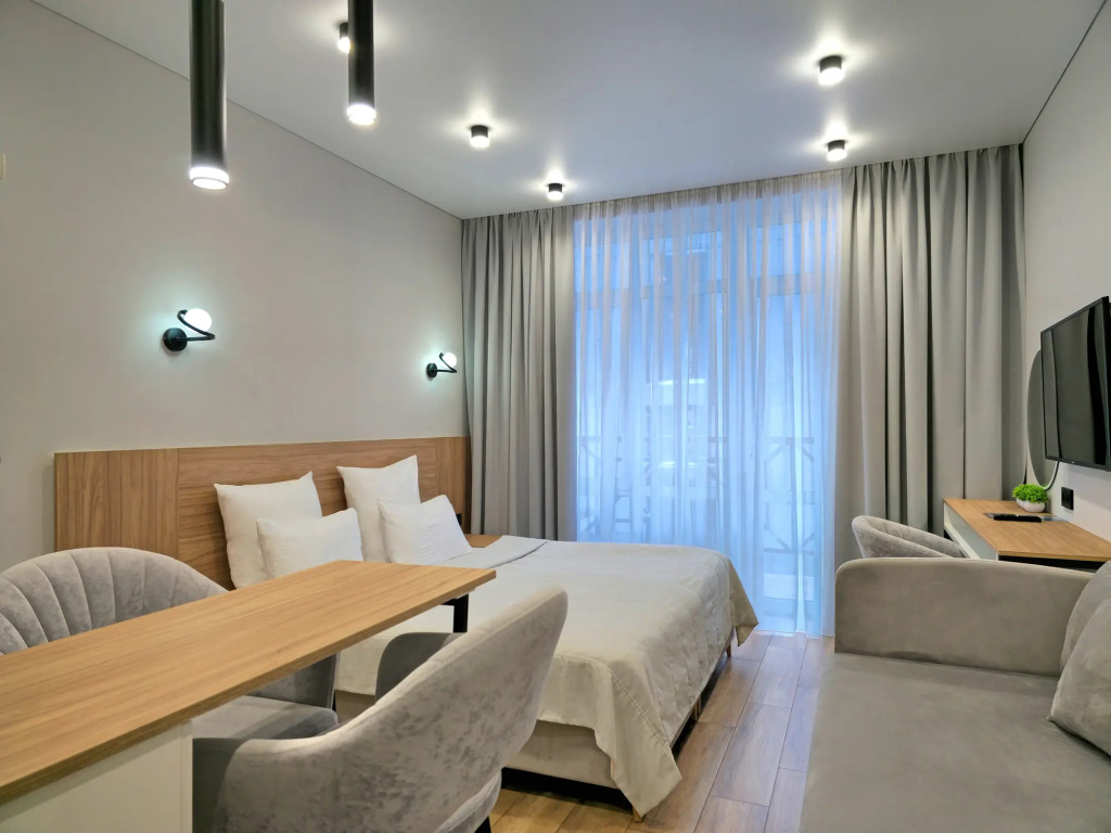 Предусмотрена гостиная, двуспальная кровать, предоставляется постельное бельё, есть доступ к Wi-Fi и необходимой техникe для проживания. В стоимость проживания включён завтрак «шведский стол».
