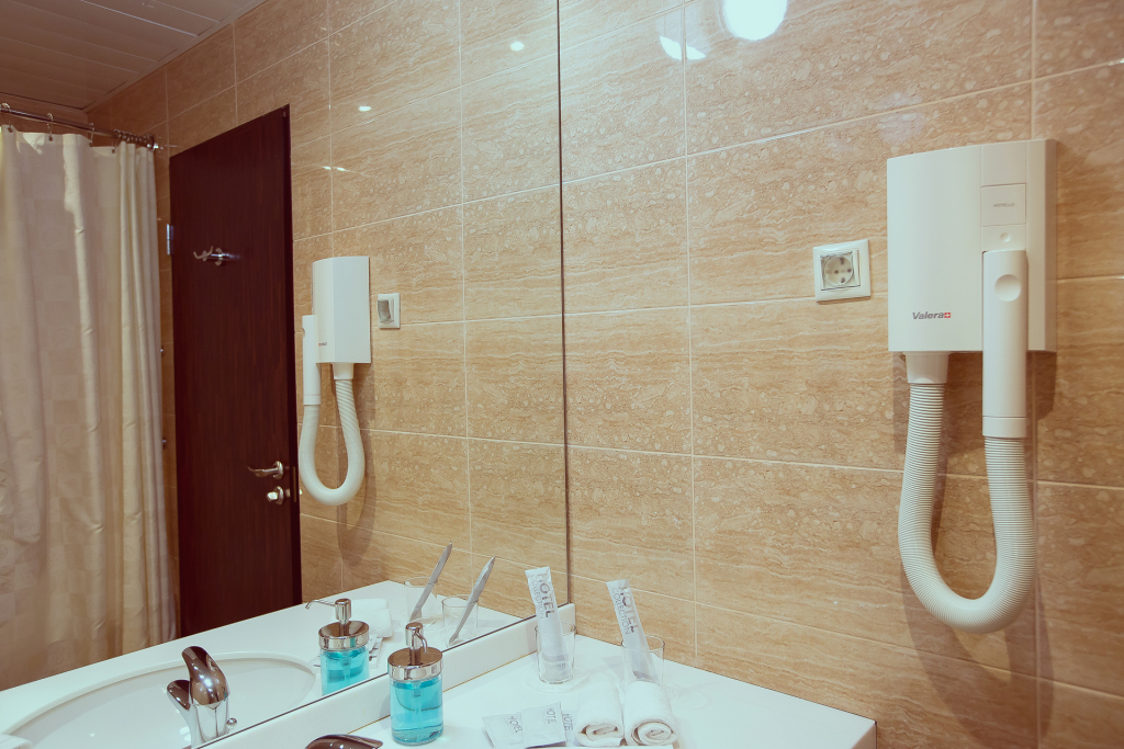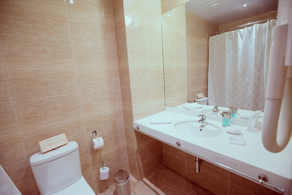 Площадь стандартного номера — 17.0 кв.м. В номере вы найдёте душ, телевизор, мини-бар, халат и тапочки. Перечисленные услуги есть не во всех номерах.