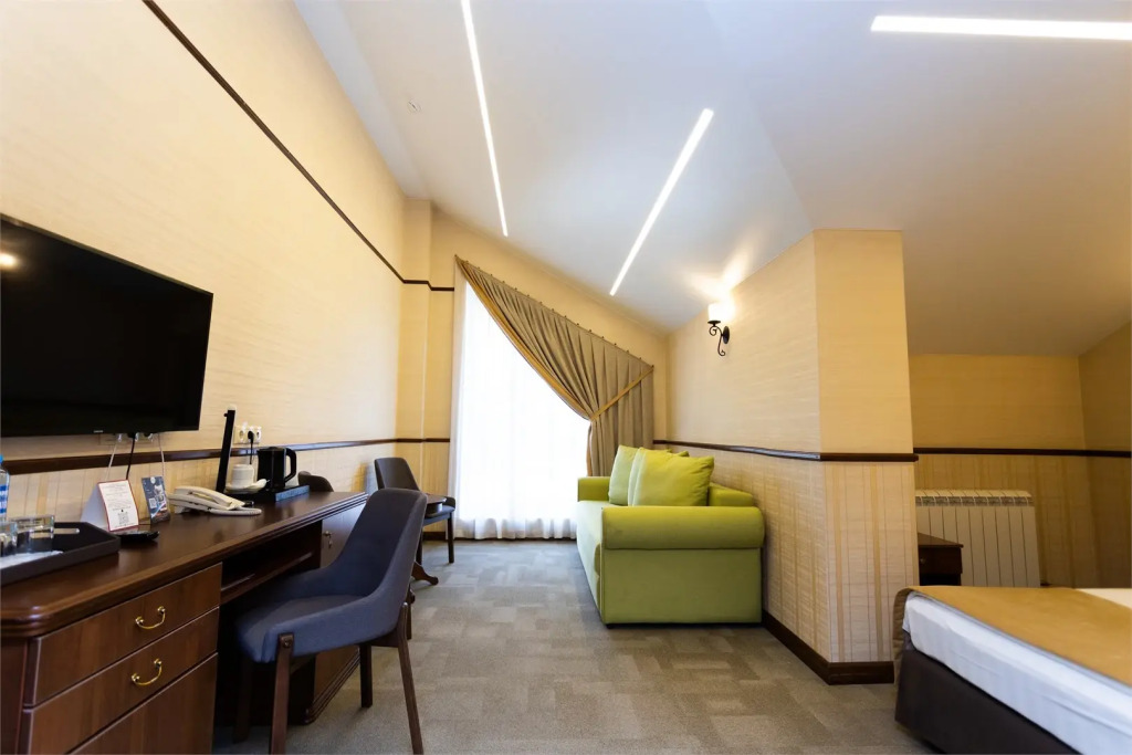 Чтобы вы могли отдохнуть после долгого дня, в номере есть телевизор и мини-бар. Оснащение зависит от выбранной категории номера.