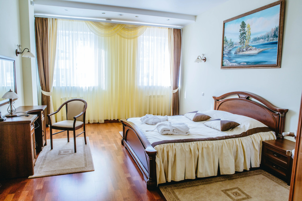 Номер уютно обставлен и оснащён необходимым, чтобы отдохнуть после долгого и насыщенного дня. Имеются телевизор, мини-бар и халат. Перечисленные услуги есть не во всех номерах.