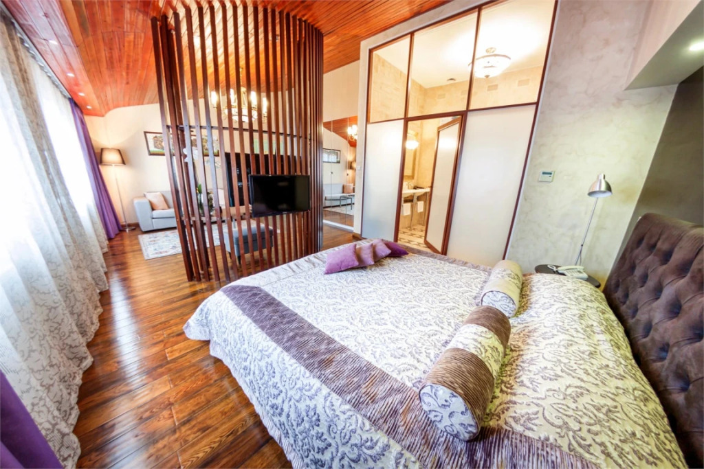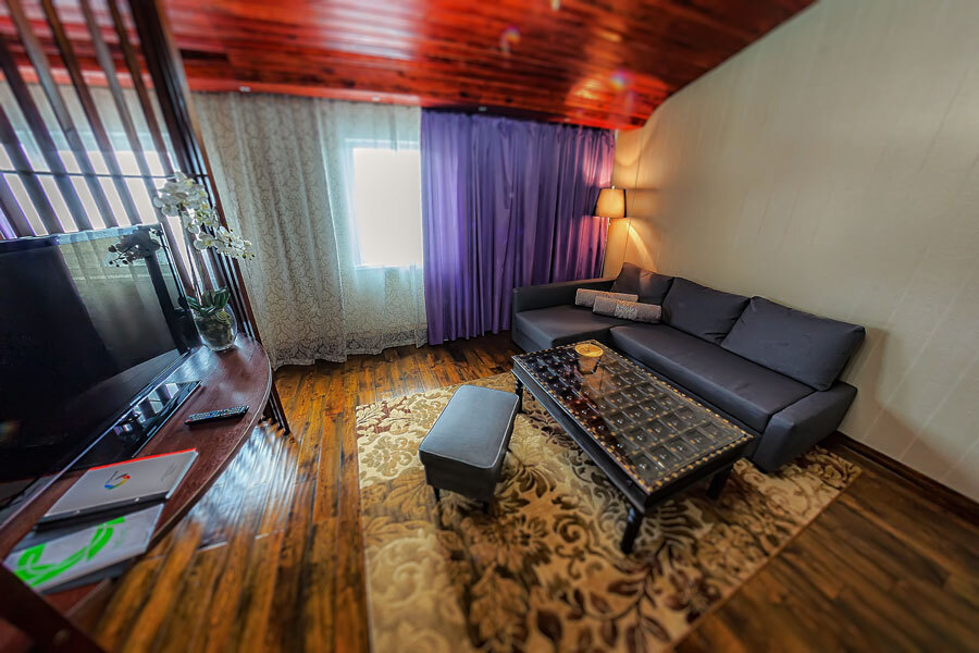 Чтобы вы могли отдохнуть после долгого дня, в номере есть телевизор, мини-бар и халат. Оснащение зависит от выбранной категории номера.