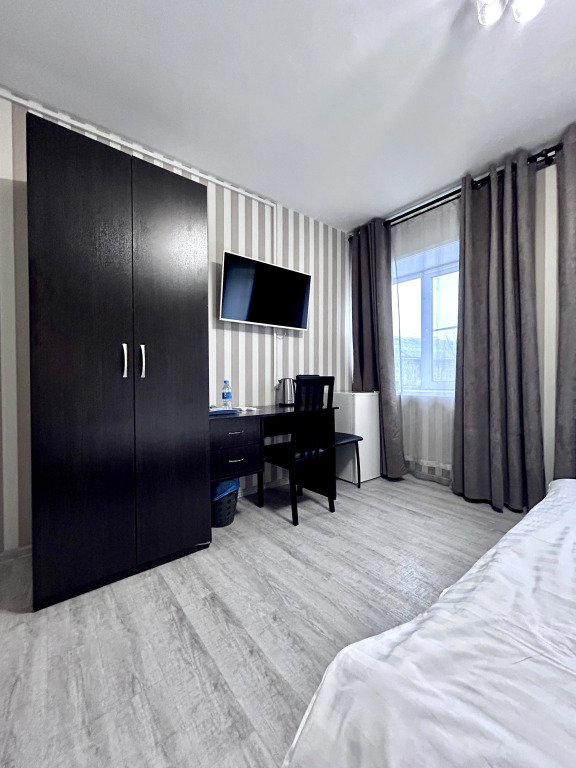 чудесный отель!! администратор очень вежливая и приветливая, в номере все чисто и красиво, все в хорошем состоянии. предоставлено практически все удобства для комфортного проживания: одноразовые тапочки, полотенца для рук, ног, и всего тела, одноразовые наборы с зубной щеткой и пастой, мыло, две чайные пары, стаканы, чайник, столовые приборы, очень порадовало наличие чая и кофе, холодильник, швейный набор, телевизор, кондиционер, тумбочка, куча шкафчиков для всякого                                                небольшой след подтекшего стояка на потолке (но для меня это вообще не важно), не очень хороший wi-fi и низковатая температура в номере
