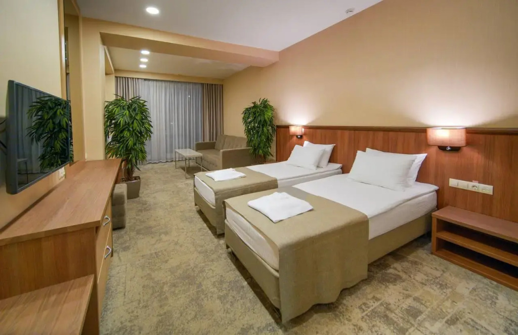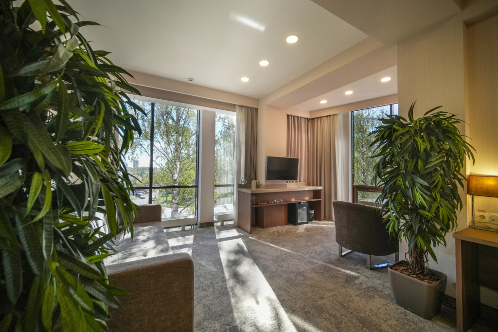 Площадь стандартного номера — 19.0 кв.м. В номере есть душ, телевизор, халат и тапочки. Оснащение зависит от выбранной категории номера.