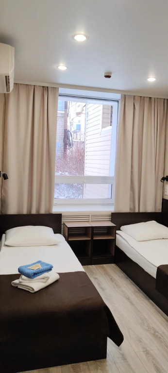 В номере вы найдёте будильник, душ, телевизор, халат и тапочки. Оснащение зависит от выбранной категории номера.