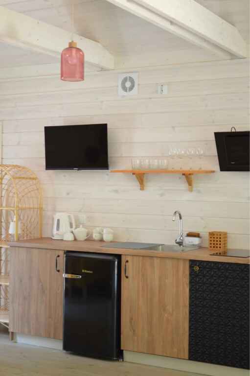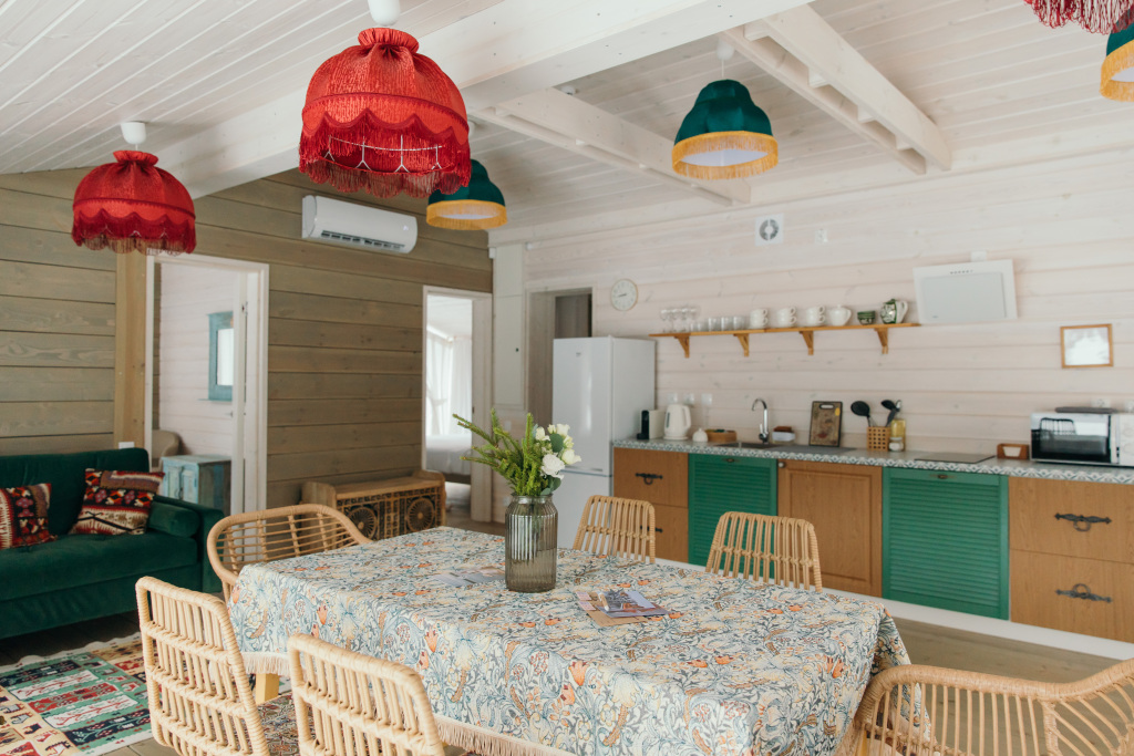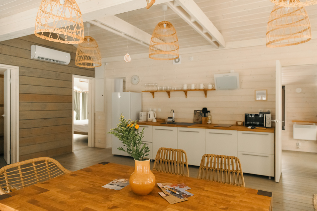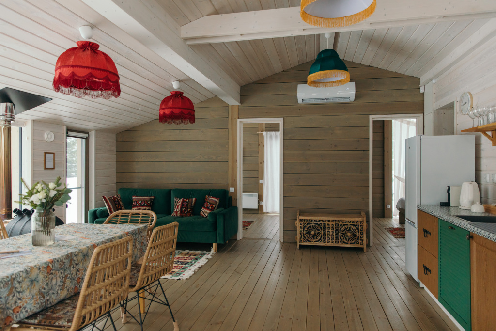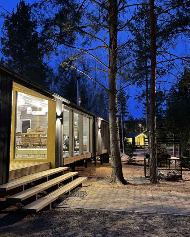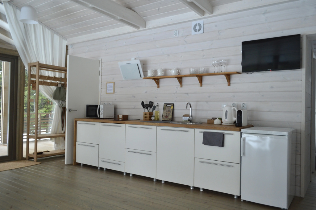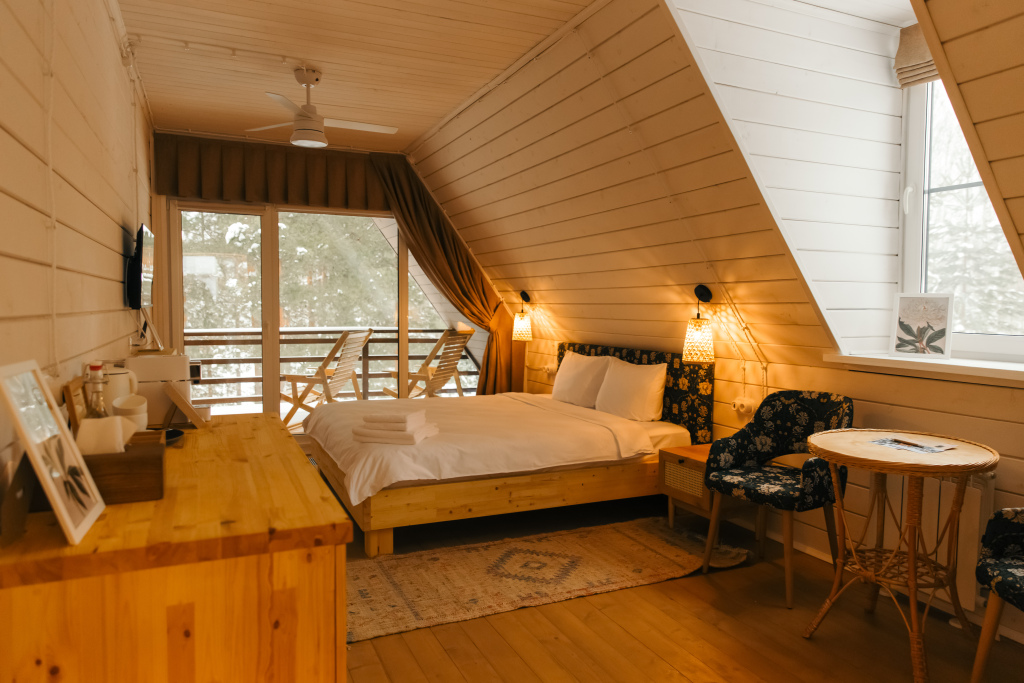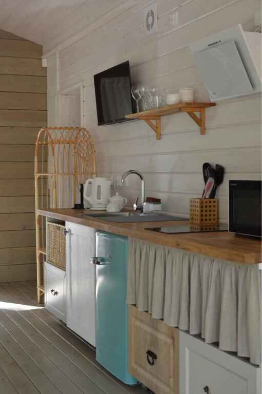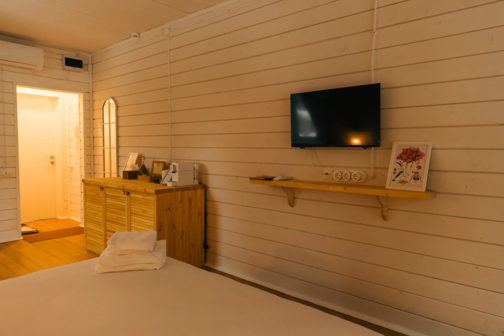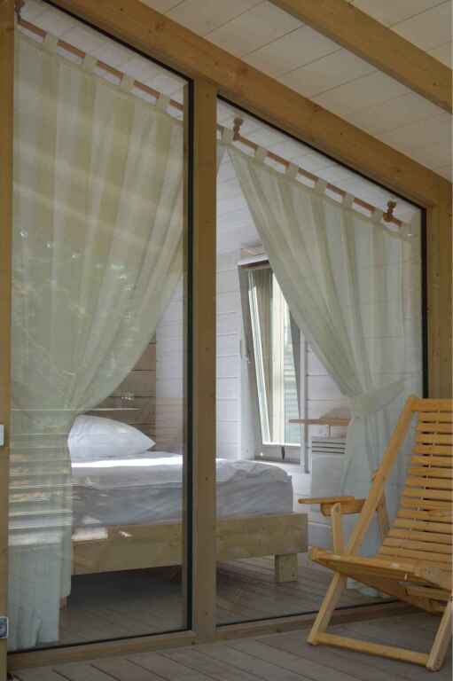 На территории расположено 11 панорамных домов с собственной кухней, 7 номеров с выходом на балкон.