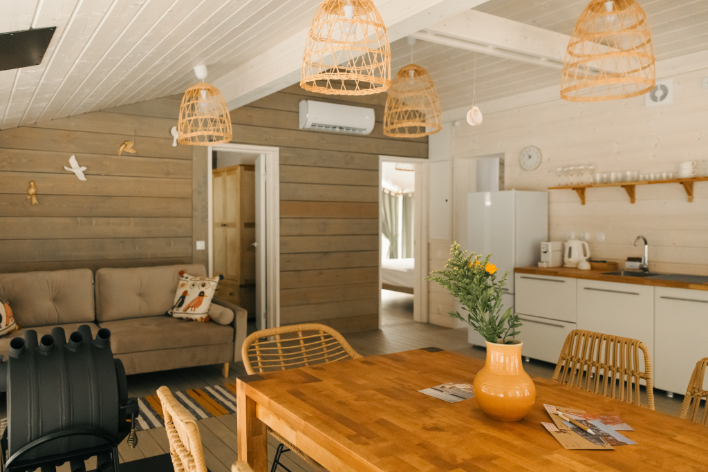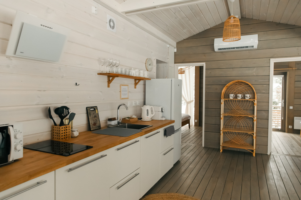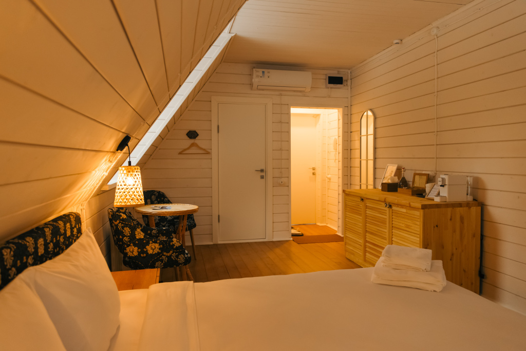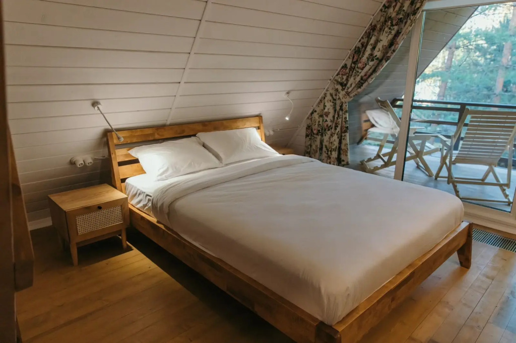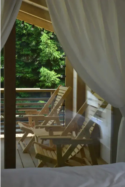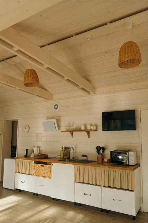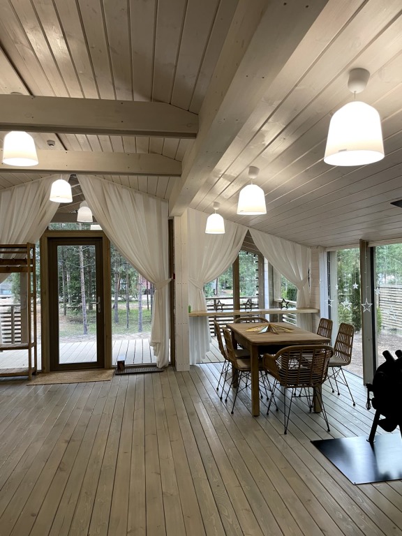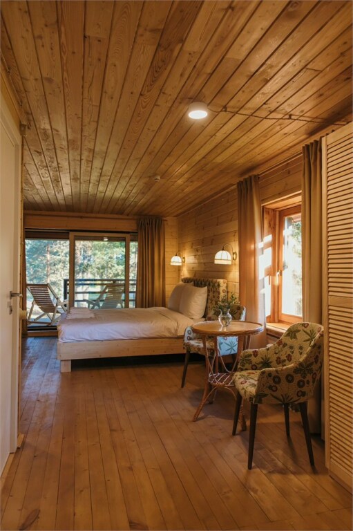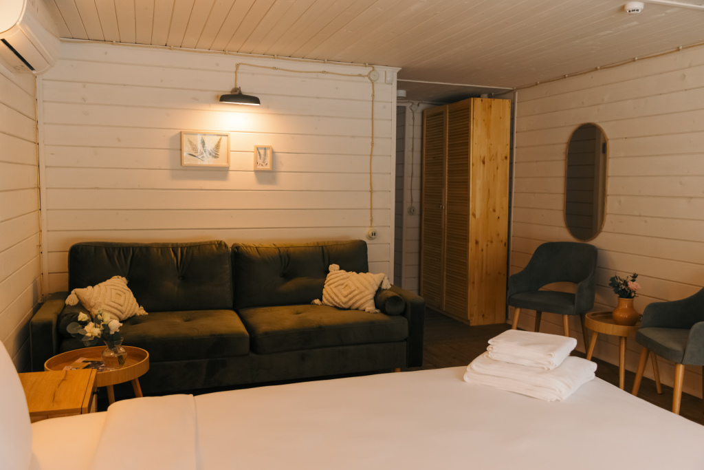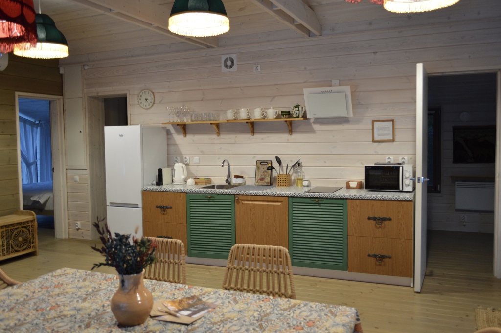 На территории расположено 11 панорамных домов с собственной кухней, 7 номеров с выходом на балкон.