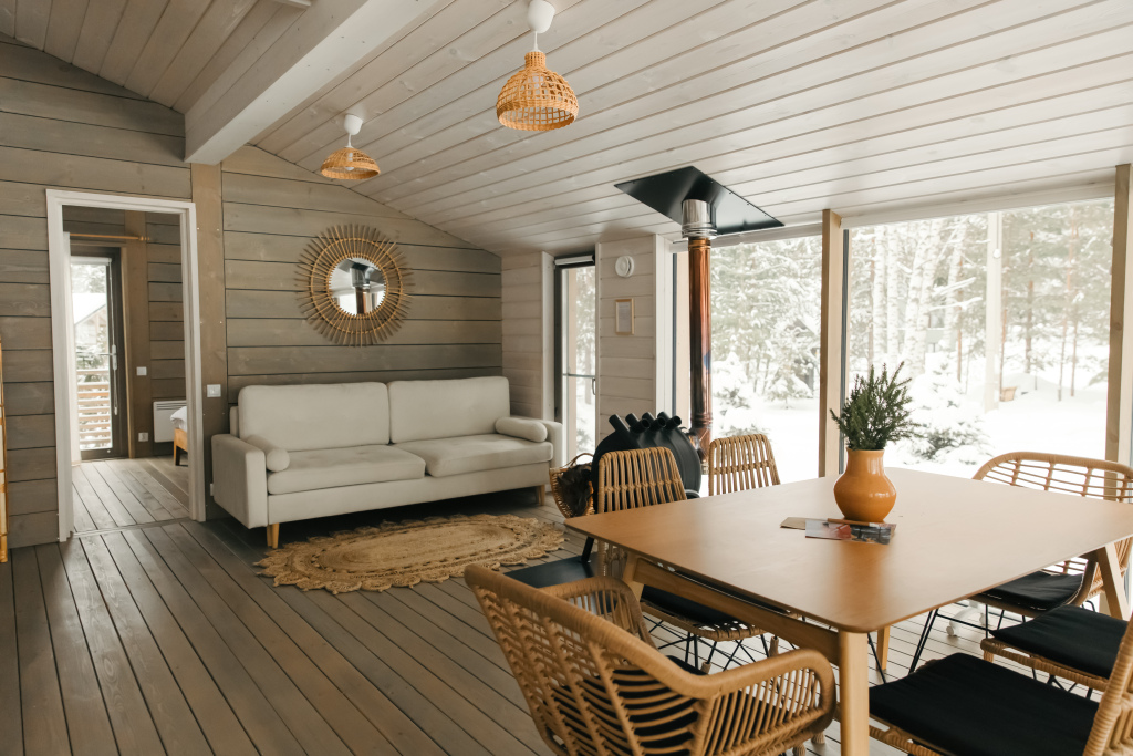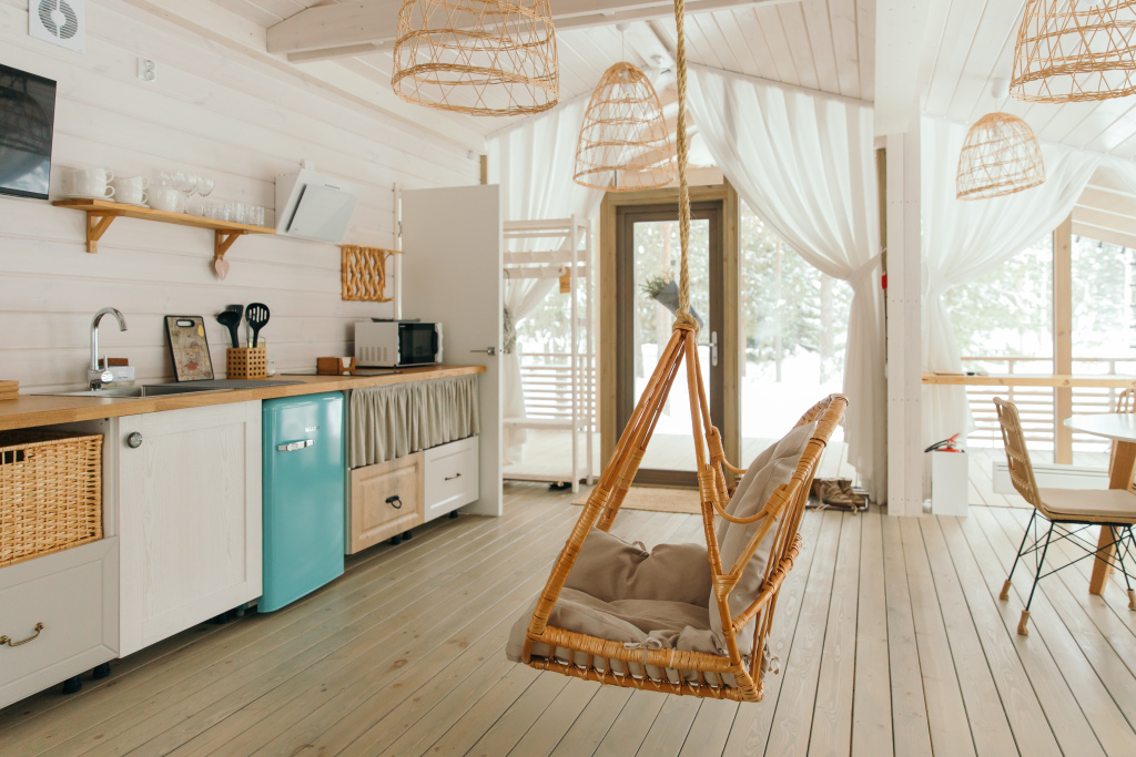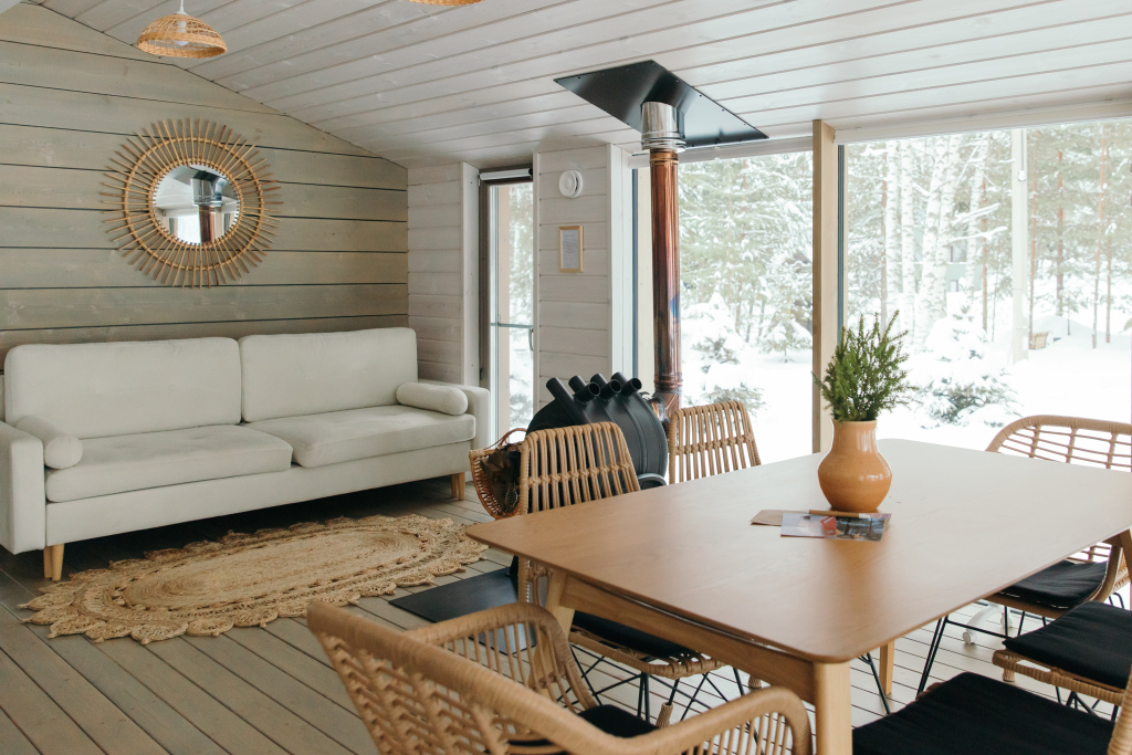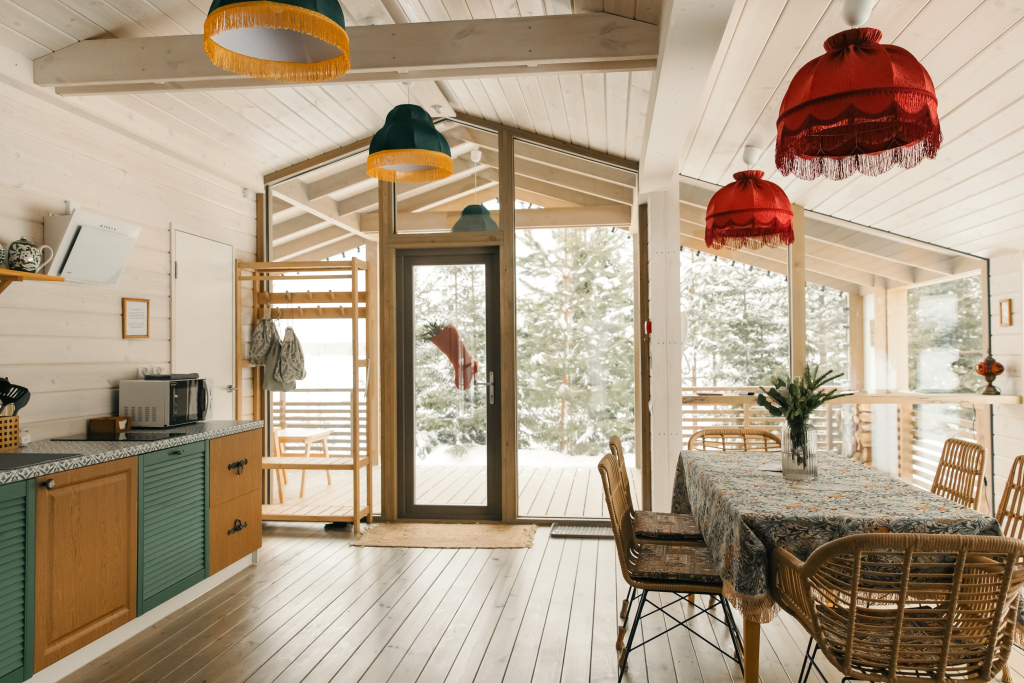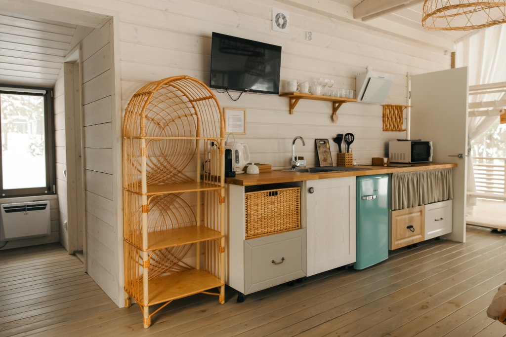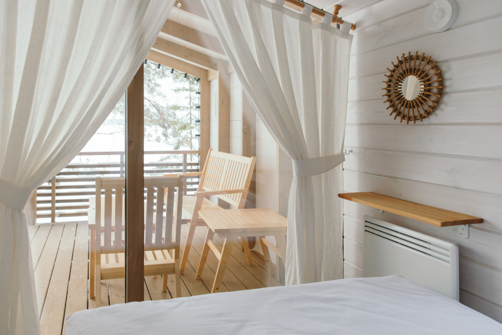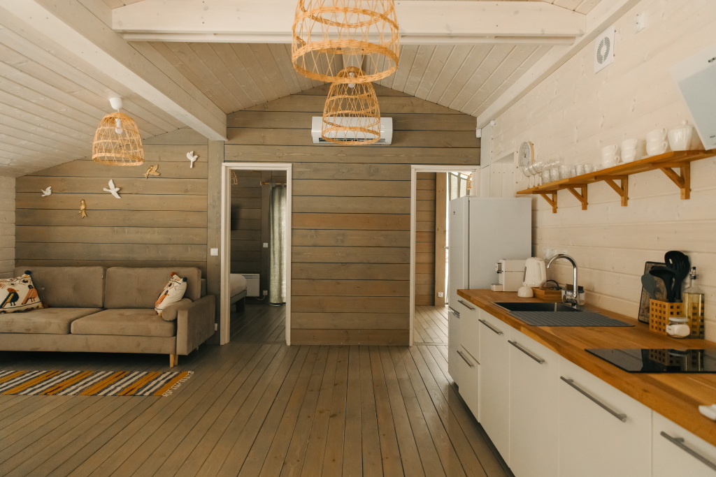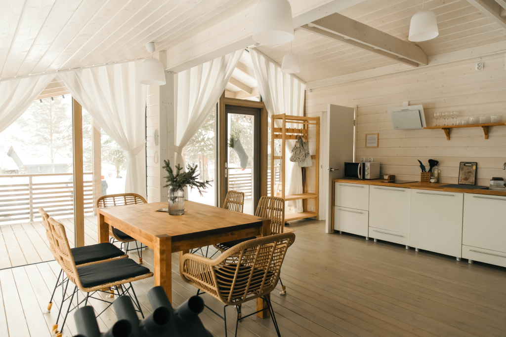 На территории расположено 11 панорамных домов с собственной кухней, 7 номеров с выходом на балкон.