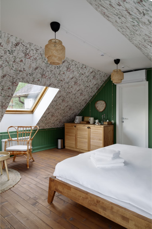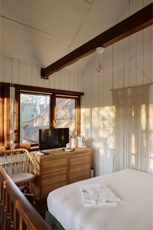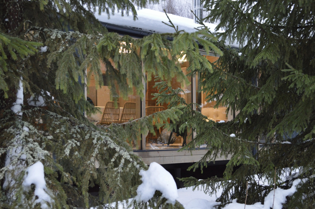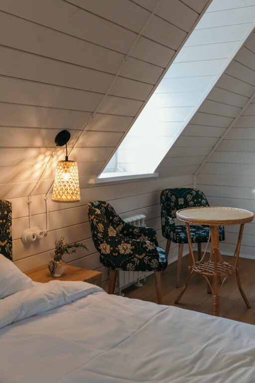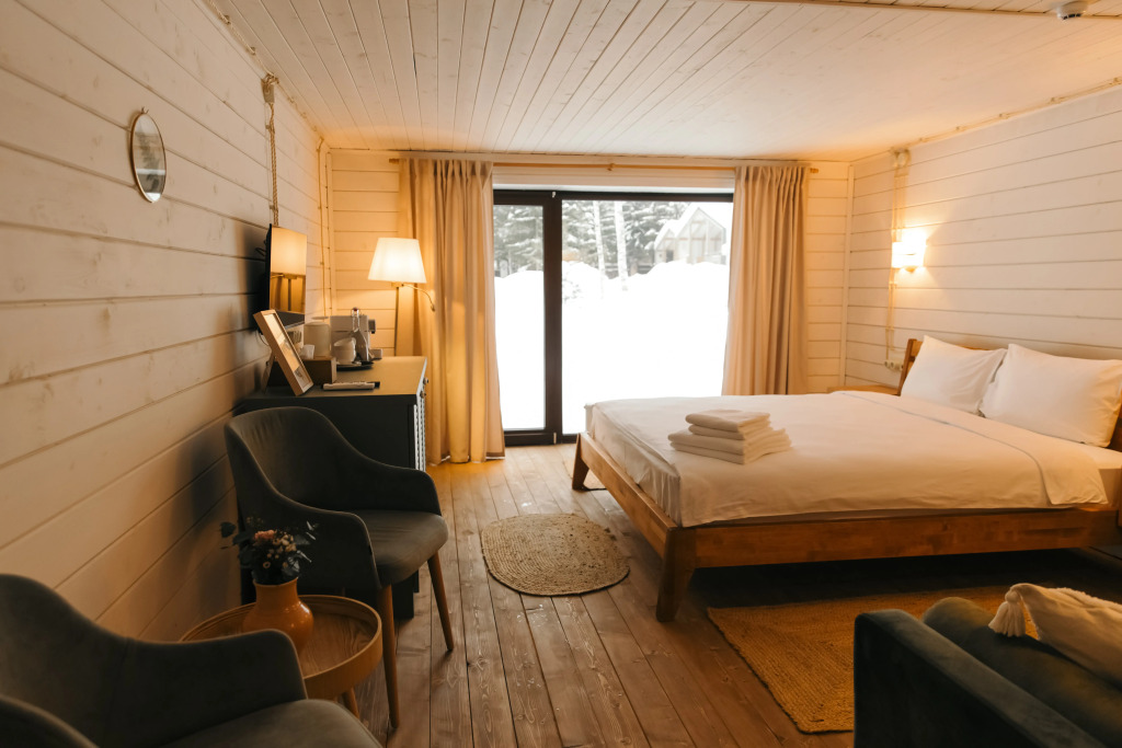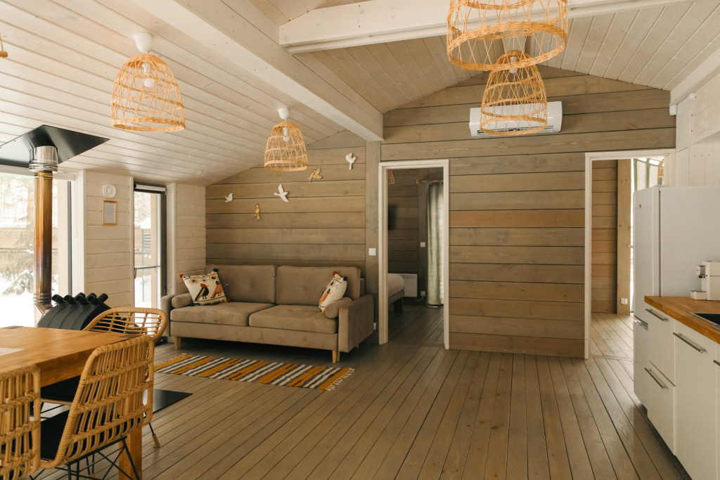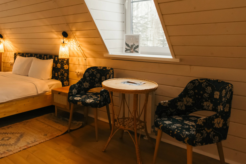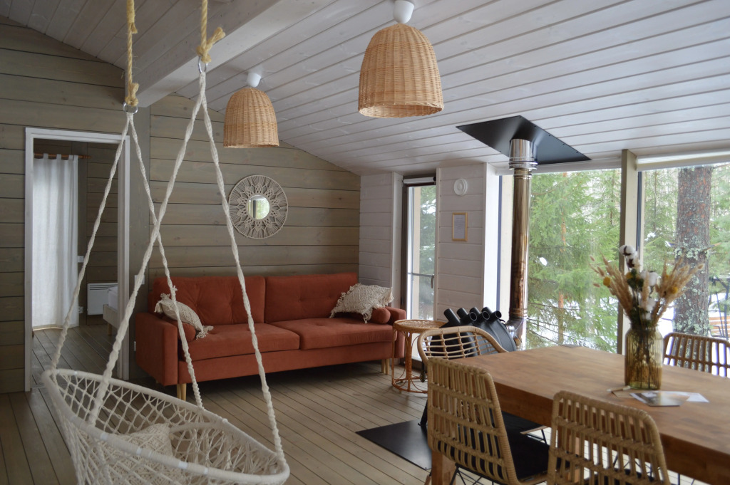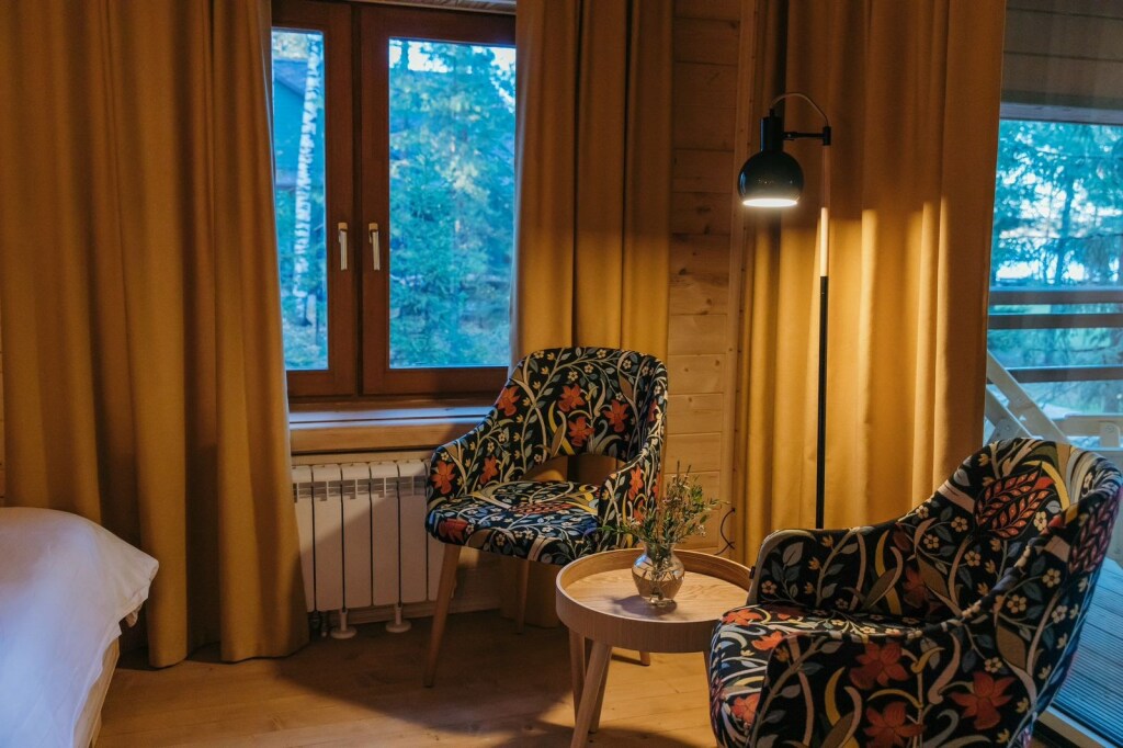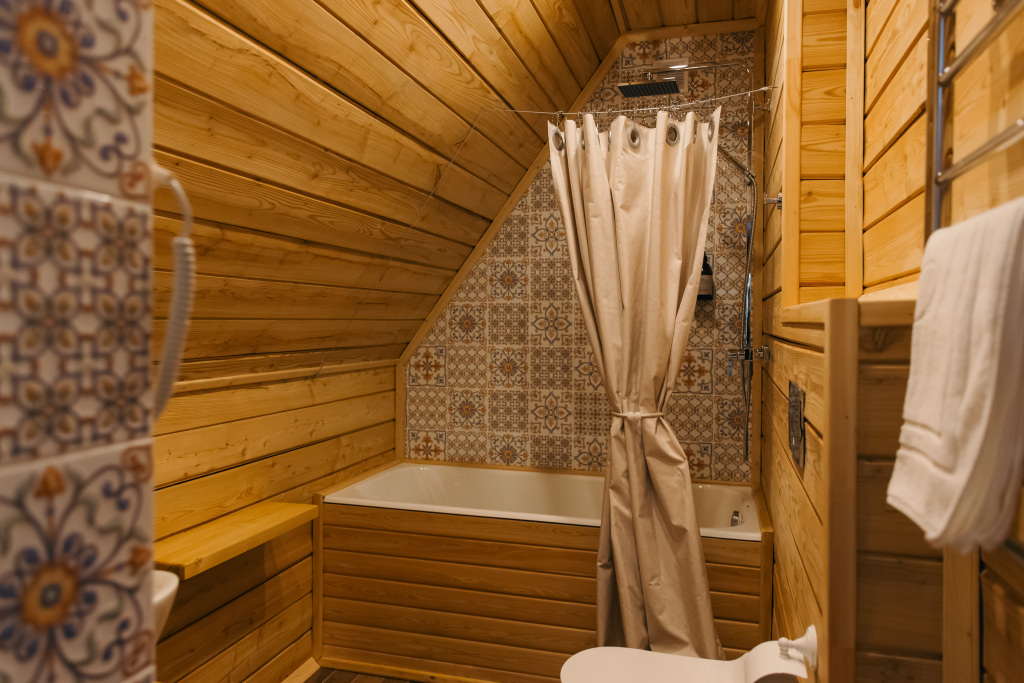 В эко-отеле есть SPA-центр с бассейном, баня с живым огнем и одна плавучая баня, миниферма с кроликами и гусями, ресторан, панорамная застеклённая веранда с видом на реку, детский клуб для детей любого возраста, кинозал для фильмов и музыкальных вечеров. В летнее время гости могут воспользоваться прокатом сап-бордов, байдарок, велосипедов, а в зимнее — лыж, коньков и тюбингов.