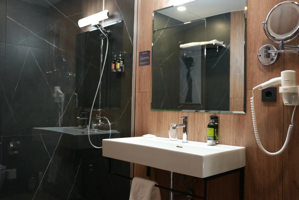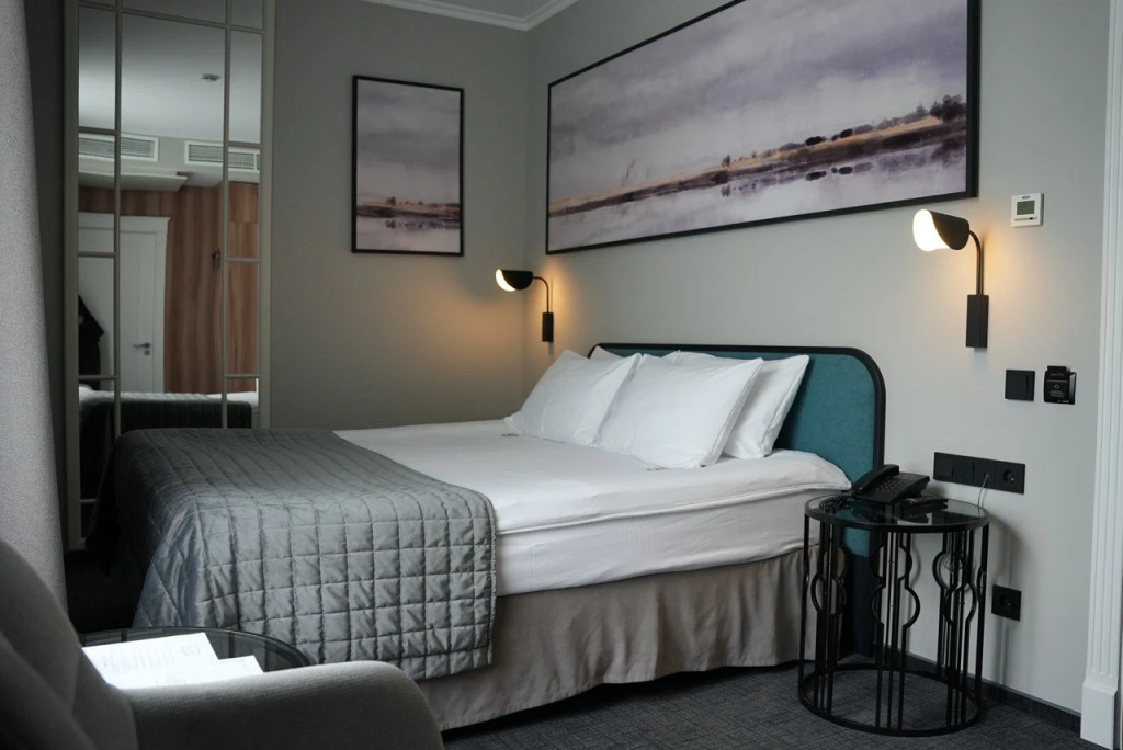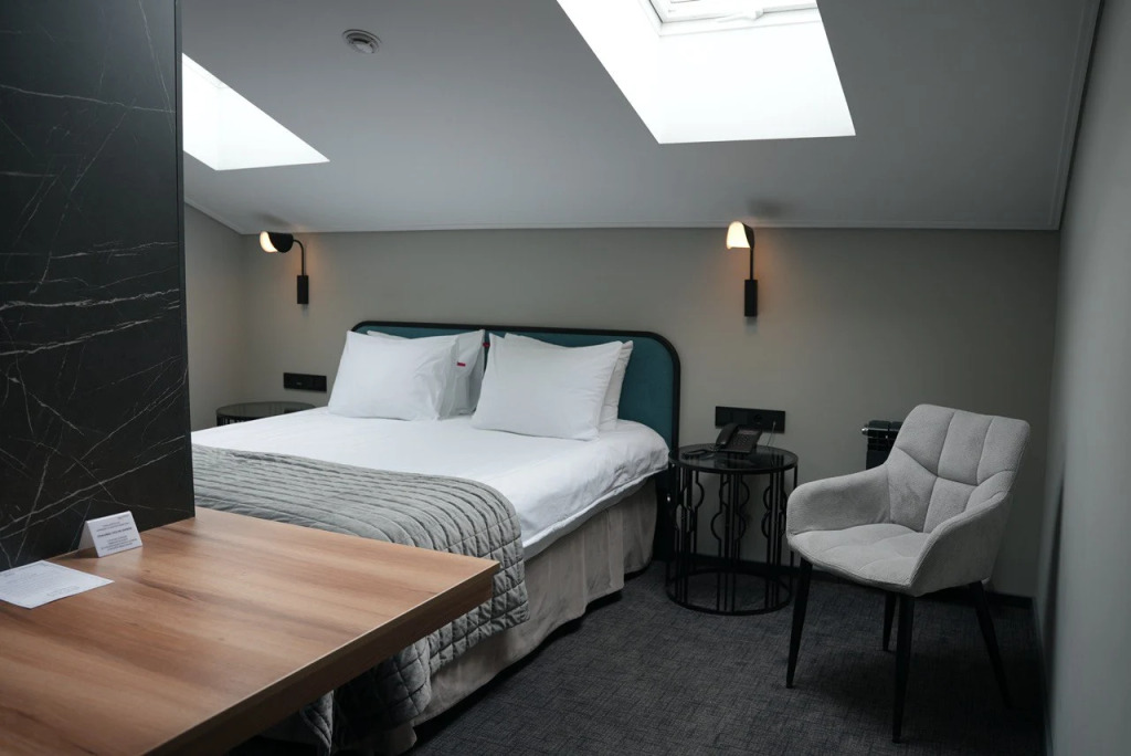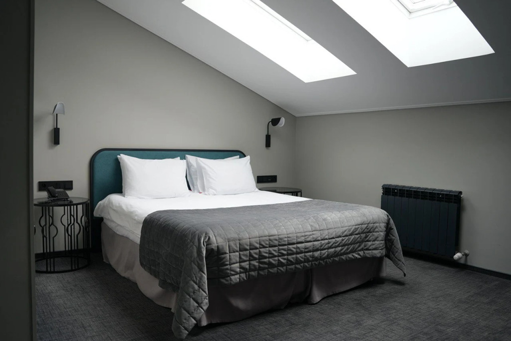 Некоторые номера категории «Стандартный двухместный номер с двуспальной или 2 односпальными кроватями» могут располагаться на мансарде.