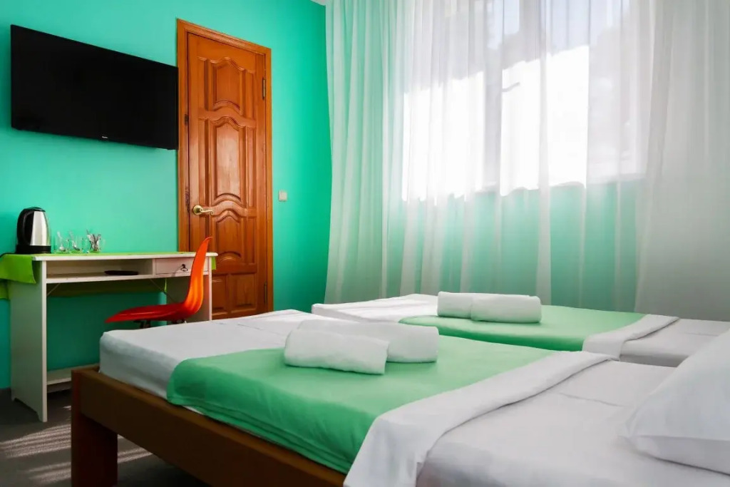 К услугам гостей однокомнатные и двухкомнатные номера с односпальными и двуспальными кроватями, в каждом номере собсвтенная ванная комната с душем. Для каждого гостя предоставляется два полотенца и комплект косметических средств — мыло, шампунь, гель для душа. Номера уютно обставлены и оснащены необходимым, чтобы отдохнуть после долгого и насыщенного дня. В номерах имеется холодильник, чайник, ЖК-телевизор, сплит-система.